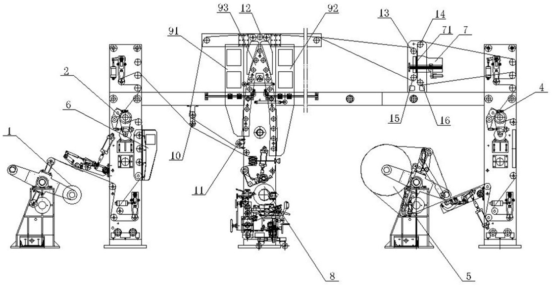 本实用新型公开了纯水墨高速凹版印刷机,由左右并排设置的放卷部件、前牵引部件、中间多组印刷单元、后牵引部件和收卷部件组成,每组印刷单元包括印刷部件和设于印刷部件上方的烘箱部件,其特征在于:烘箱部件由左右烘箱构成,左右烘箱共同围出具有倒立V型形状的加长烘道;印刷工作时,印刷部件印刷出来的印张从右烘箱的底部开口进入、从左烘箱的底部出口出来,然后经左烘箱左侧、左烘箱顶部后到达右边的下一印刷单元。本实用新型可实现纯水墨的高速凹版印刷,并具印张预烘干处理和印张正反面印刷图案检测功能。
