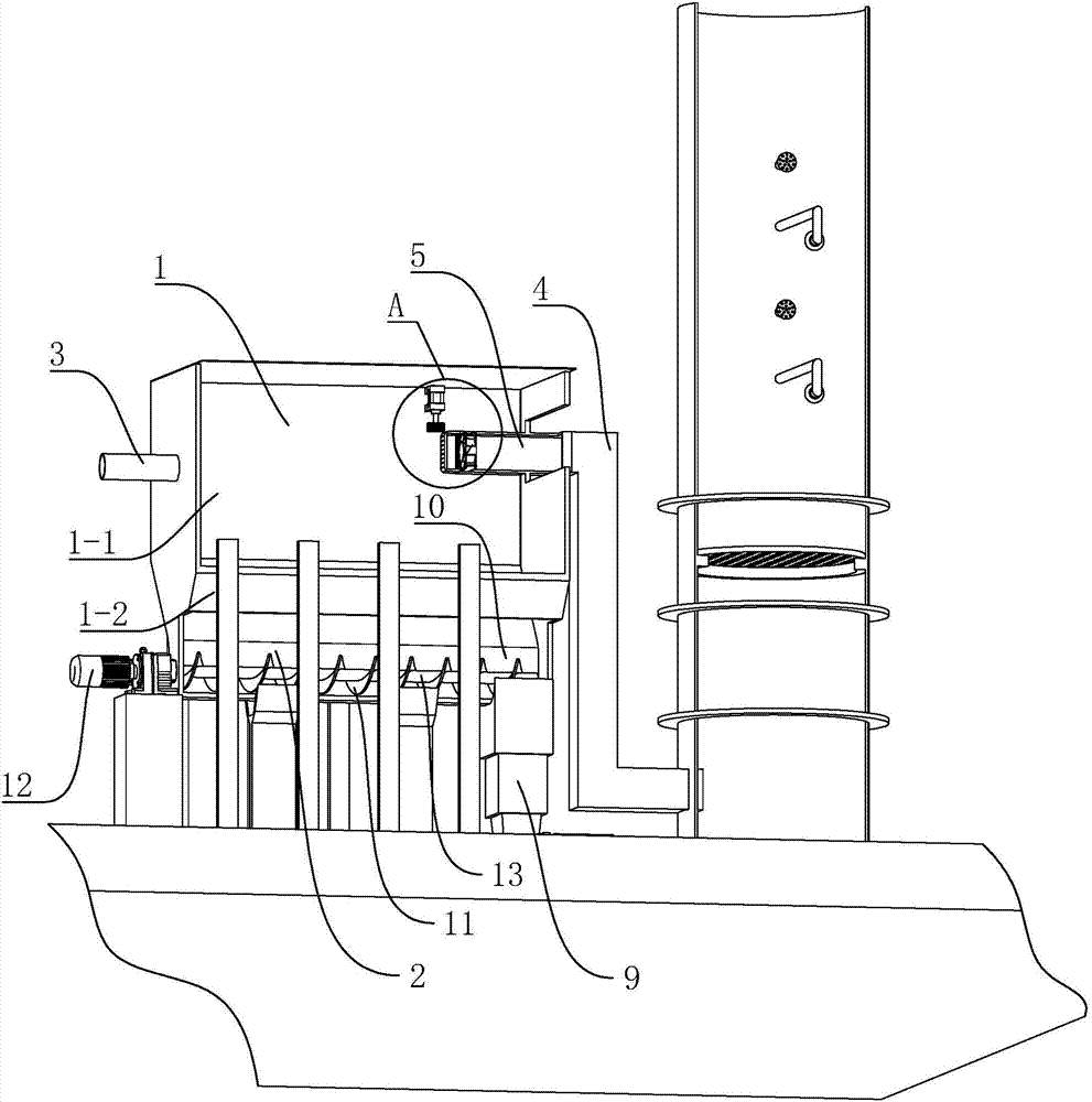 本实用新型公开了一种烟尘沉降装置,其技术方案要点是一种烟尘沉降装置,包括沉降箱、位于沉降箱面向地面一侧的传送筒,所述沉降箱设有进气口和出气口,所述沉降箱内设置有抽气装置,所述抽气装置包括位于沉降箱内壁的抽气管,所述抽气管的一端伸出沉降箱外,所述抽气管的另一端设有网面,所述抽气管内设置风机。通过采用上述技术方案,当废气在沉降箱中沉降时,抽气装置将沉降箱中的废气抽取,通过网面过滤,砂石被吸附在网面上,当网面上的砂石积攒至一定量后,受重力作用掉落,增快砂石沉降的速度。
