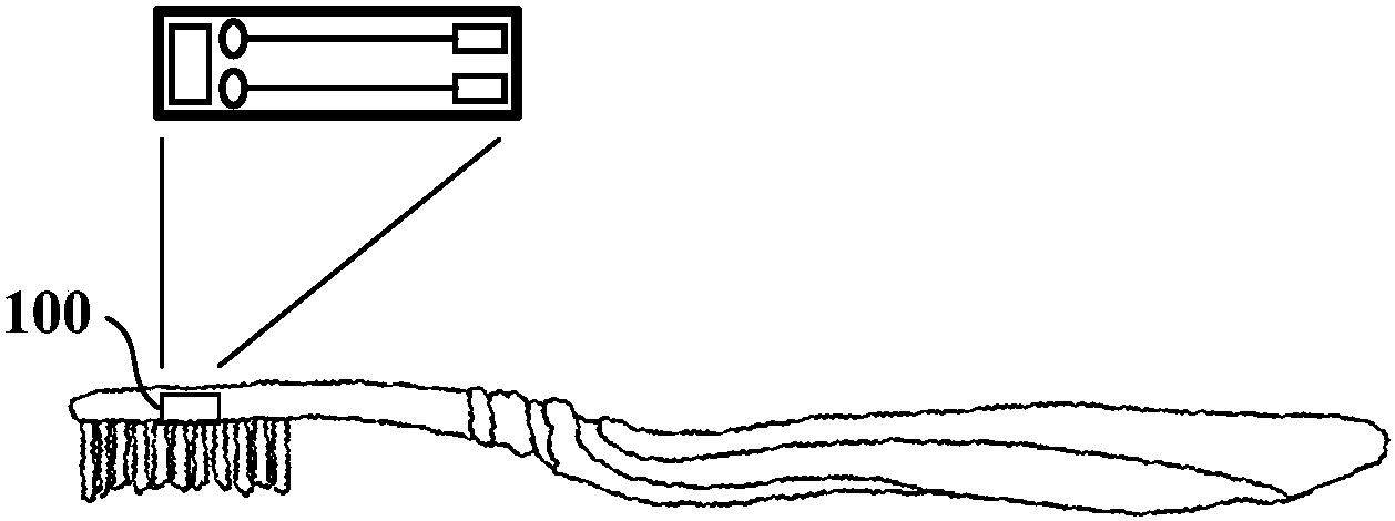 本申请提供了一种用于检测唾液的pH值的装置。该装置包括衬底;用于提供参考电势的参比电极;用于接触唾液并生成检测电势的检测电极;以及电耦接到所述参比电极与所述检测电极的检测器,所述检测器用于比较所述检测电势和所述参考电势以确定所检测的唾液的pH值。本申请还提供了包括该装置的牙刷、牙套和牙贴,以及该装置的制作方法。