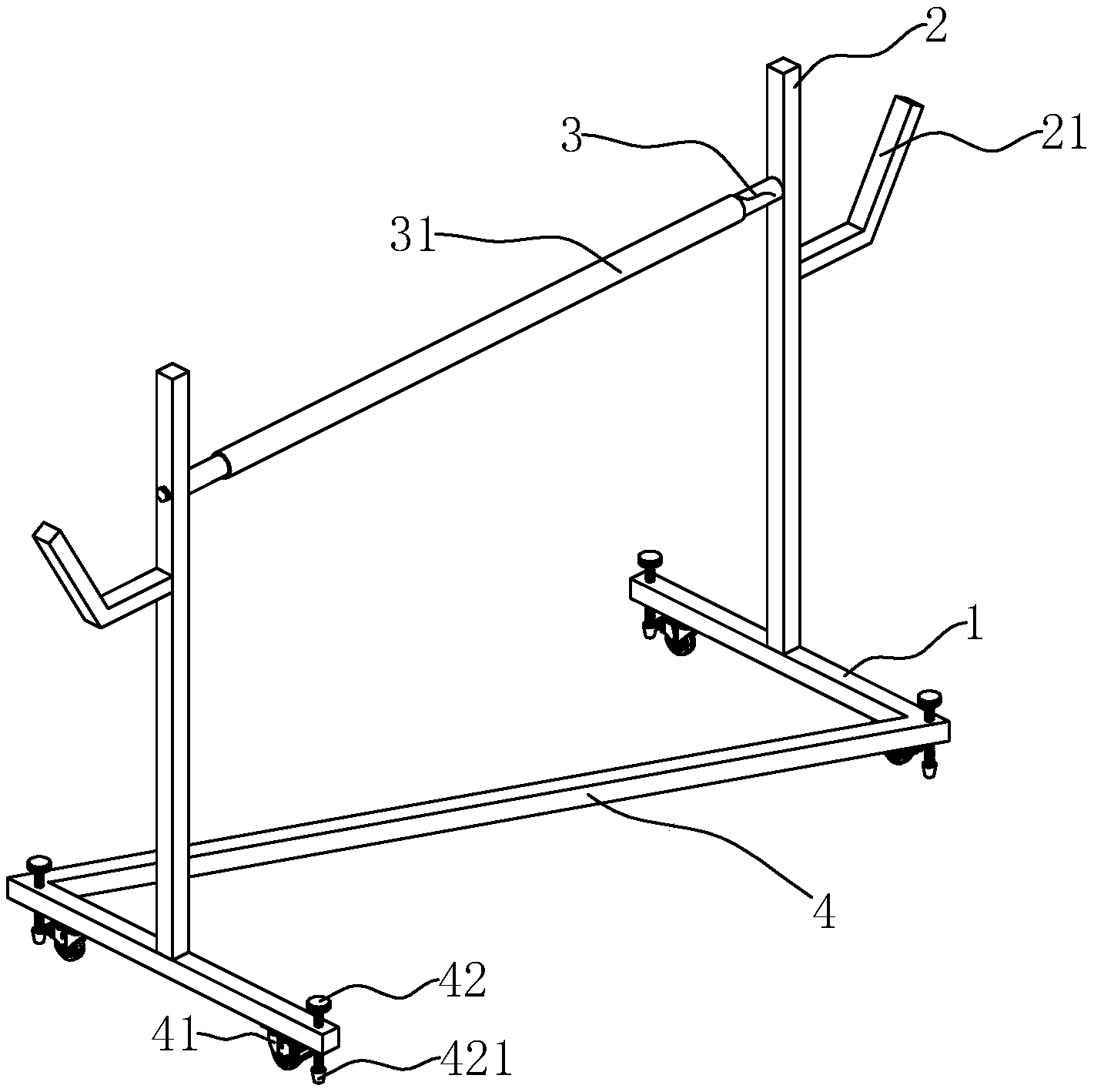 本实用新型公开了一种挂衣架,其技术方案要点包括相互平行的底杆、相互平行分别安装在底杆上的竖杆、以及连接竖杆并与地面相平行的横杆,其特征是底杆通过斜杆相连接;所述斜杆的两端与底杆的两端相连接,所述斜杆与底杆呈锐角;当挂衣架闲置时,能够通过挂衣杆底部互相咬合的形式进行存放,节约存放空间。