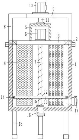 本实用新型公开了一种车用尿素生产线搅拌防沉淀装置,包括罐体,罐体的顶部法兰连接有盖体,盖体的内腔顶部通过轴承转动连接有承载板,承载板的底部左右两侧对称固接有搅拌板叶,承载板的顶部中心处固接有机盒,机盒的内腔底部中间设置有正反转电机,正反转电机的底部动力输出端连接有螺纹丝杆,盖体的顶部左右两侧对称固接有直角柱,两组直角柱之间固接有支撑板,支撑板的顶部中间设置有搅拌电机,搅拌电机的底部动力输出端连接有搅拌联动轴,螺纹丝杆上螺接有管套,管套的外壁固接有导向条板,导向条板的外侧固接有圆环架,螺纹丝杆的底部固接有挡位块,本实用新型结构设计合理,便于对车用尿素搅拌的同时防止其在容器底部的沉淀。