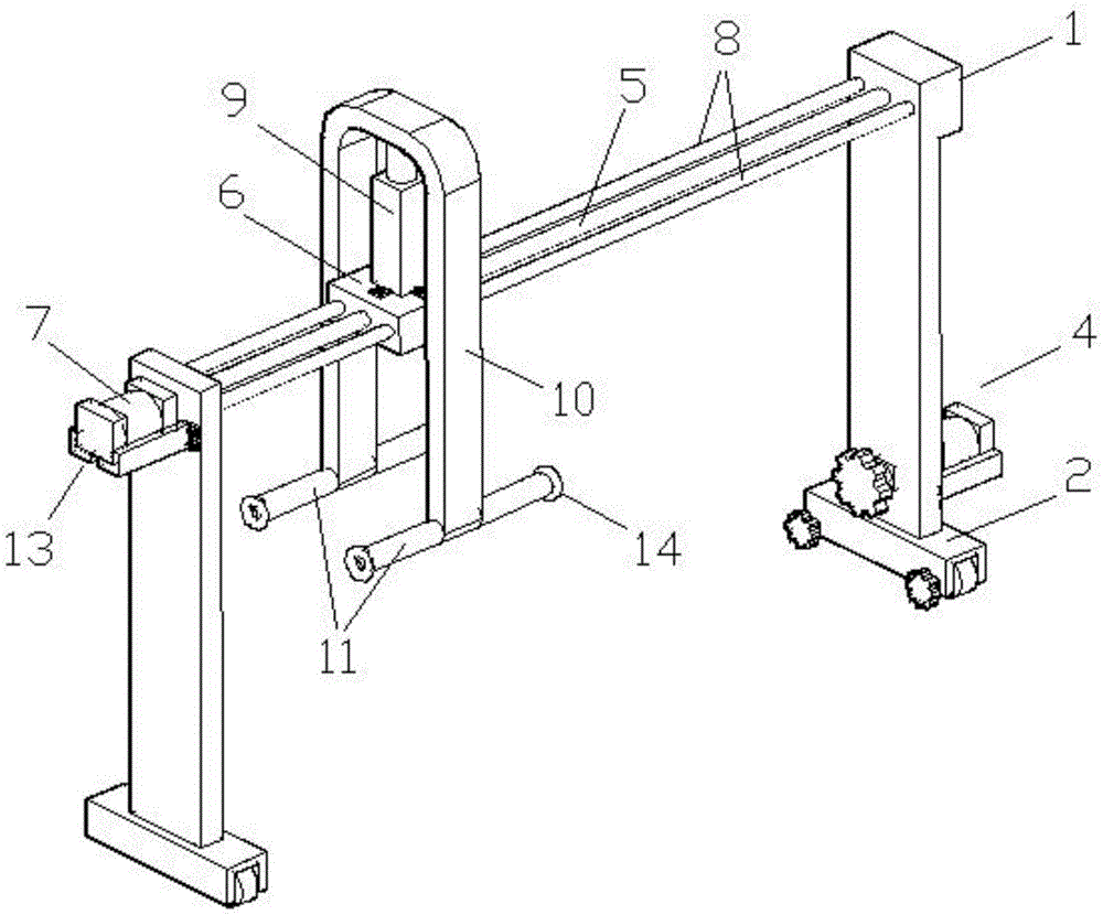 本实用新型公开了一种尿素溶解系统用上料行车,涉及尿素加工领域,包括吊架和滚轮横架,在吊架上设有驱动机构,在吊架顶部设有传动丝杠、移动座和第二驱动电机,传动丝杠水平横置并架设于吊架顶部,传动丝杠一端与第二驱动电机的动力输出轴连接,移动座设于传动丝杠上,且移动座内设置有与传动丝杠配合连接的传动螺母,在移动座上穿设有光轴,光轴位于传动丝杠侧方并与其相互平行;在移动座顶部设有第一伸缩装置,在第一伸缩装置的伸缩顶端设有提升架,提升架包括倒U形架体和提升杆,提升杆水平横置。本实用新型的上料行车操作方便,省时省力,上料效率高,且不会造成物料污染浪费的问题,实用可靠。