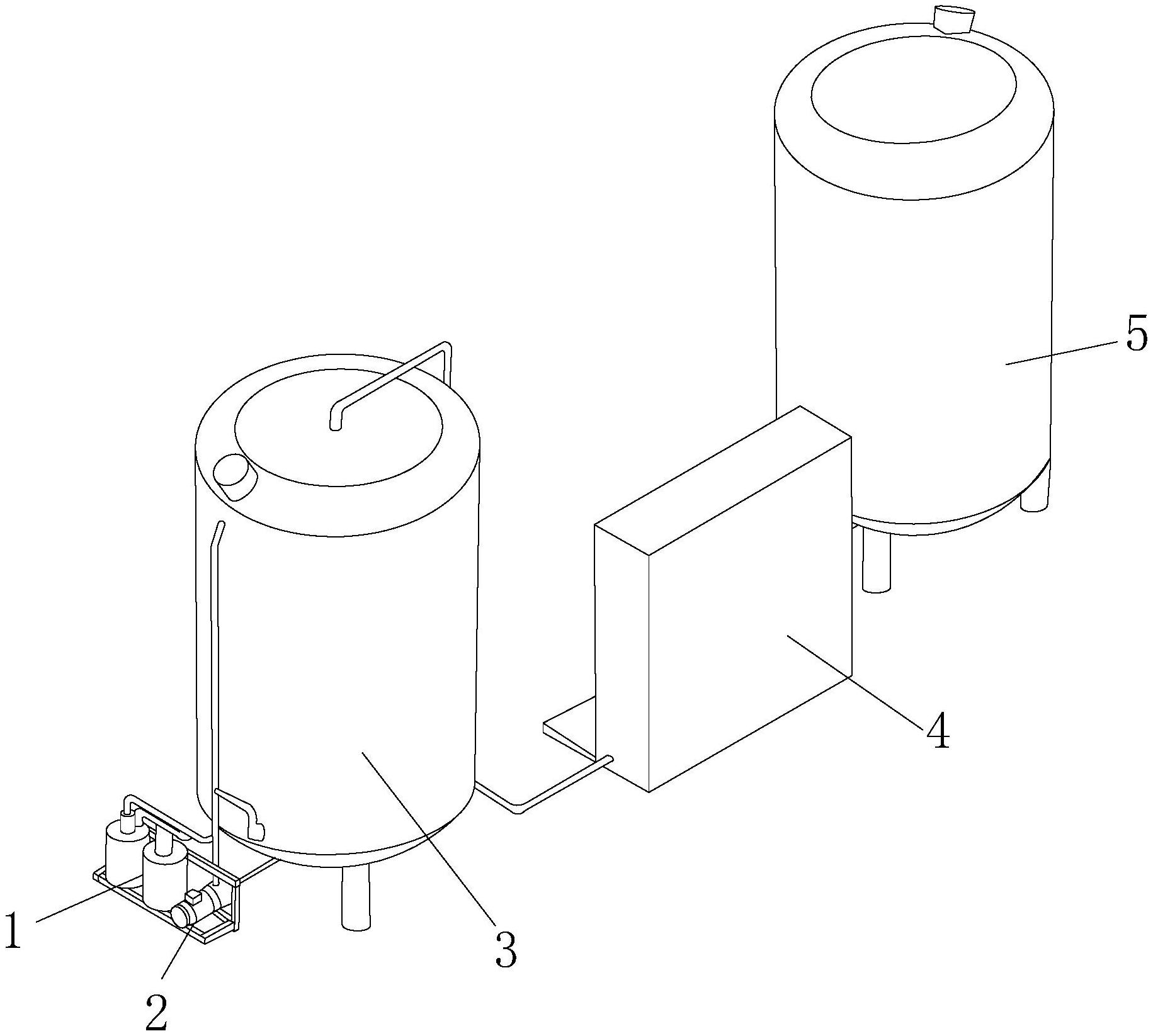 一种冷却水制备装置,它涉及冷却水制备领域,它包括缓蚀剂添加器组、供水泵、纯水箱、制水系统箱、原水箱,缓蚀剂添加器组上设有供水泵,本实用新型有益效果为:将其制水、储备、供水、缓蚀剂添加系统、加热集成化设计,集中控制,工艺结构紧凑完善,且自动化程度高,设备可根据水箱液位控制制水主机及整套系统,无需人工干预,做到自动制水,满水停机,一键实现缓蚀剂的溶解、补水、搅拌、注入,并利用远程物联网功能,有室内操控与远程操控功能,实时监控设备运行情况并操作,保证了设备的运行情况,并加设有水质排走功能,水质不合格排走,确保成品水品质优,且具有自动恒温加热功能,加热温度可调,水温的自动控制。