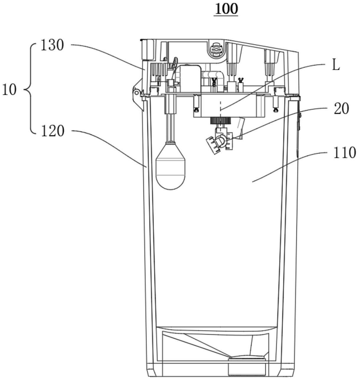 本实用新型公开了一种基站的污水箱及基站。其中,基站的污水箱包括箱体和喷淋装置,所述箱体具有污水容纳腔;所述喷淋装置绕设定轴线可旋转地设于所述污水容纳腔,所述喷淋装置包括至少一个出水口,所述出水口构造成进入所述喷淋装置中的水可从所述出水口喷出以冲洗所述污水容纳腔的腔壁,所述出水口的中心法线方向与所述设定轴线不共线。本实用新型的基站的污水箱自动冲洗的效果更好,更不易出现残留垃圾、发臭的问题,可以减少用户手动清洗的次数或使得用户无需手动清洗基站的污水箱。