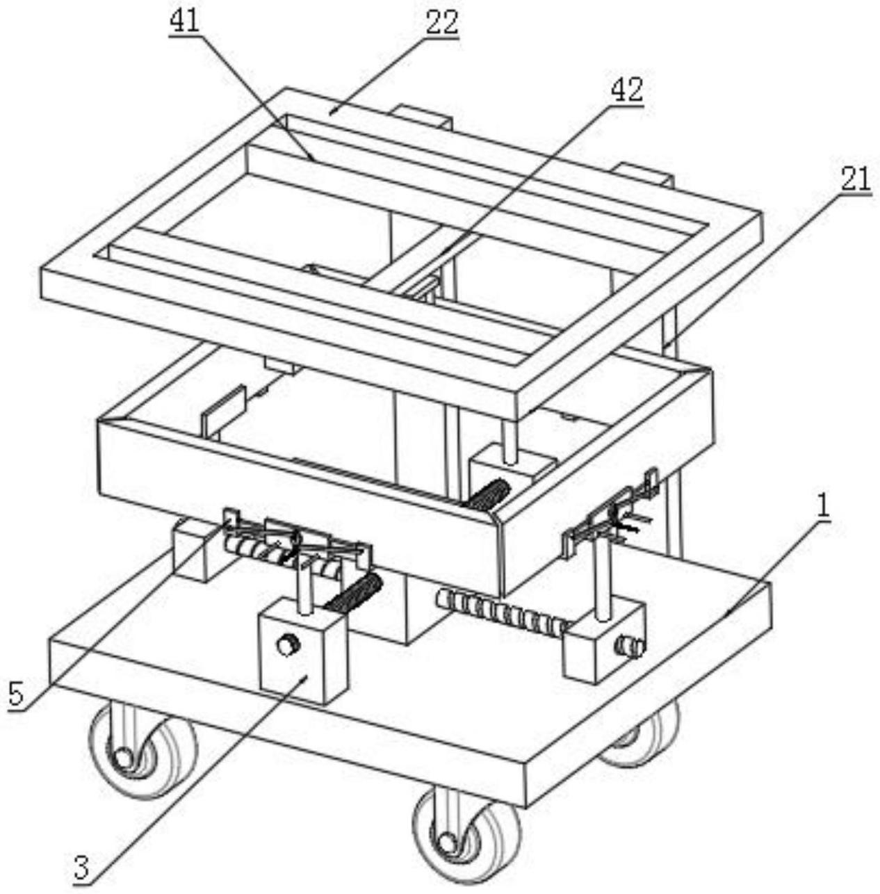 本实用新型公开了一种热处理管道风门框快速焊接设备,属于管道风门技术领域,包括推架,所述推架顶端中部安装有组装机构,所述组装机构包括第一双向螺纹杆、第二双向螺纹杆、移动块、支撑块和挡板,所述推架顶端中部活动安装有第一双向螺纹杆,所述推架顶端位于第一双向螺纹杆顶端位置处活动连接有第二双向螺纹杆,所述第二双向螺纹杆和第一双向螺纹杆外表面两侧均通过螺纹连接有移动块,通过组装机构,能够对矩形条进行夹持,降低了矩形条的夹持难度,从而使得矩形条安装的更加稳定,进而便于移动块顶端支撑块内部的矩形条进行调节,进而便于四个矩形条进行拼接,降低了四个矩形条的拼接难度,从而便于门框的拼接,降低了门框的拼接难度。
