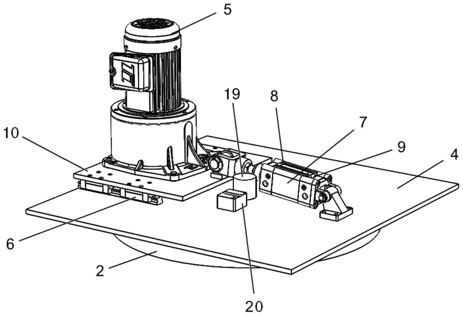 一种雾炮水平往复旋转装置,包括旋转平台、活动平台、驱动电机、动力齿轮、气缸、与气缸连接的双气压气缸控制系统以及水平固定在机架上且彼此同轴的正转齿盘和反转内齿盘,所述旋转平台位于正转齿盘上方并与正转齿盘的中心轴转动连接,所述活动平台通过水平导轨与旋转平台滑动连接,所述驱动电机竖直固定在活动平台上,所述动力齿轮位于正转齿盘与反转内齿盘之间并与驱动电机的输出轴同轴连接,所述气缸的缸体和活塞杆分别与旋转平台和活动平台连接。本发明通过改变动力齿轮与正转齿盘和反转内齿盘的啮合方式来改变承载雾炮机的旋转平台的旋转方向,驱动电机无需频繁启停和改变旋转方向,从而降低了设备故障率,保证了雾炮机的稳定运行。