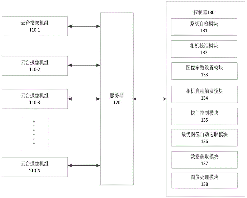 一种用于子弹时间自动选取最优图像的系统及方法,该系统包括云台摄像机组、服务器和控制器;云台摄像机组包括多个摄像机,所有摄像机均匀、间隔地固定在用于子弹时间的环形支架上,且所有摄像机的摄像头均朝向环形支架中间的指定位置;服务器通过通讯连接配置于控制器和至少一个安装于同一环形支架上的云台摄像机组之间,以通过服务器对各摄像机进行控制和调整;控制器内设有最优图像自动选取模块,用于通过最优图像选取算法,在拍摄到的运动序列中自动选取每个摄像机的最优图像,本发明最大限度地简化了子弹时间视觉特效的制作复杂度,省去了用户手动选取最优图像的繁琐环节,节约了子弹时间制作的人力和时间成本。