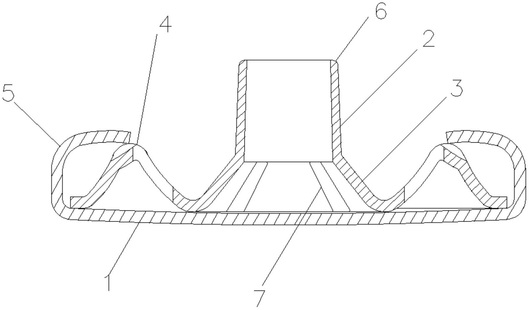 本实用新型公开一种急钮面;包括纽扣面和锥形管,锥形管的一端设有喇叭管,喇叭管的边缘弯折出有一V形凸起,纽扣面的边缘弯折出有一U形卡边,U形卡边卡接在V形凸起上。本实用新型采用喇叭管和锥形管的设计方式,能够加强该急钮面的受力支撑强度;锥管的末端拉伸变薄减少卷边阻力;设置V形凸起,能够使急钮面支撑铆合的钮面饱满;喇叭管加4条加强筋能够防止锥形管的末端受模具卷边力后下锉损伤钮面。本实用新型结构简单、组合牢固,能够防止铆合变形,提高使用寿命。
