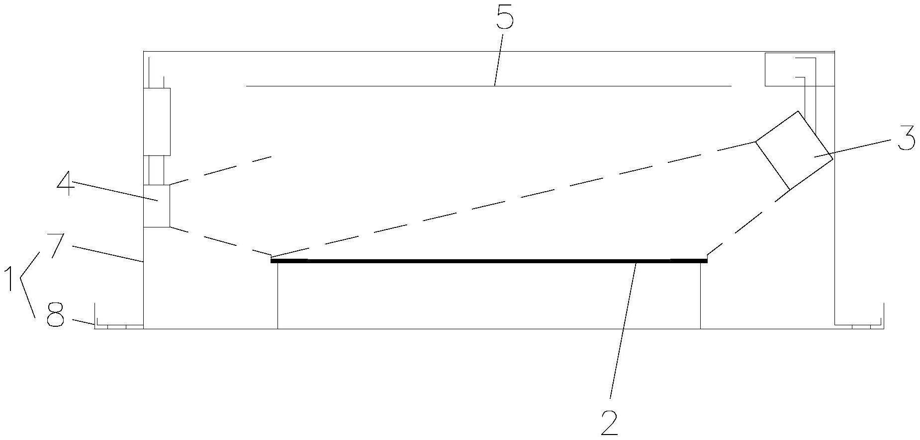 本实用新型涉及蓝天灯技术领域,尤其是涉及一种天空模拟灯具,包括灯框组件,还包括散射板、第一光源、第二光源和设有蓝天场景的幕布,所述散射板设置在灯框组件上,所述第一光源、第二光源和幕布均设置在灯框组件内,所述散射板设置在幕布下方,所述第一光源用于照射散射板并产生瑞利散射,所述第二光源用于照射幕布,使用时,相比于现有技术,在散射板上方设置对应的幕布,通过散射板形成的蓝天效果去观察到幕布上的蓝天场景,更加真实,这样适用于不同场合,可以更换成与其相匹配的天空场景图,从而使人们身临其境,避免了现有蓝天灯只是呈现出单一天空的蓝色,环境比较单调,没有真实体验蓝天的各种场景,也就降低了灯具的适用场合的问题。