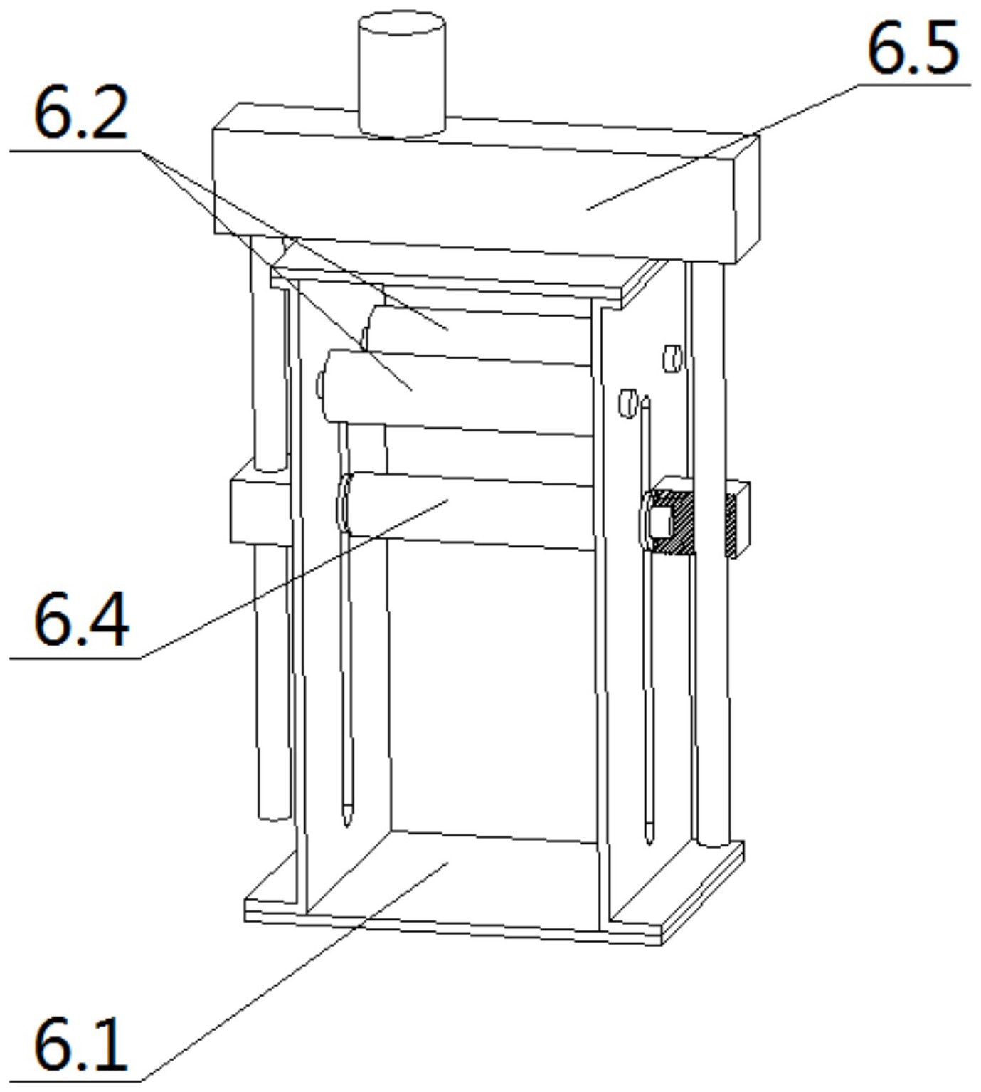 一种夹层玻璃生产线PVB胶片预放料装置,通过在原夹层玻璃生产线的PVB胶片放料装置、长度测量装置之间增加设置预放料装置,避免长度测量装置在对PVB胶片放料时产生的过大拉力,无需再对放料长度进行补偿,因此解决了设置放料长度补偿所产生的最终送至压合装置上的PVB胶片的长度过长的问题,避免了PVB胶片的浪费,因此给企业带来了良好的经济效益。