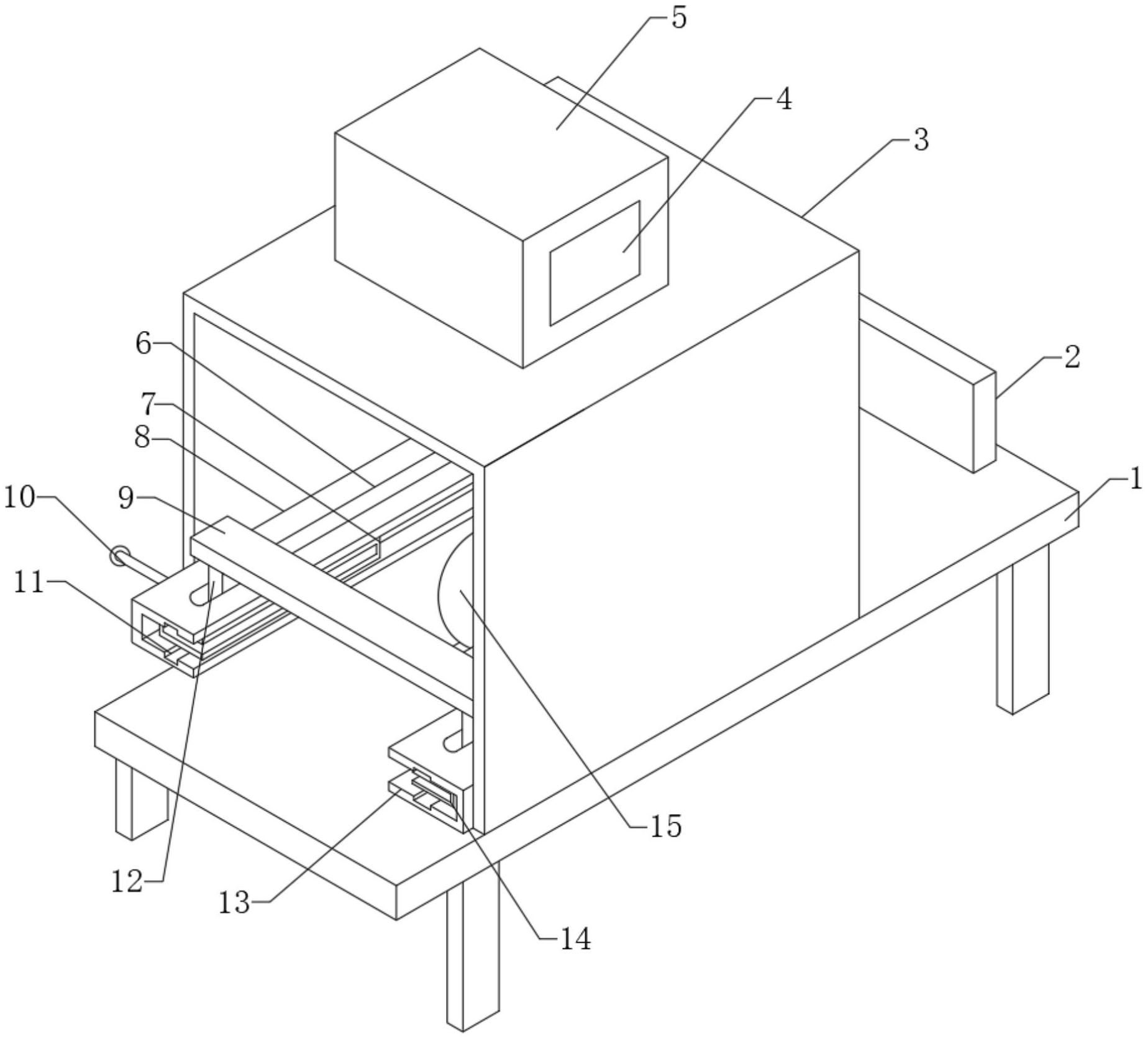 本实用新型公开了一种切割精度高的彩钢板用切割机,包括工作台,所述工作台的上表面焊接有箱体,所述箱体的内侧壁焊接有第一滑轨,所述第一滑轨的内侧壁螺纹连接有螺纹杆,所述螺纹杆的一端贯穿所述第一滑轨的内侧壁且转动连接有推板,所述第一滑轨的内部插接有第一框体,所述第一框体的内侧壁开设有第二通槽,通过将彩钢板放入第一框体和第二框体内,然后转动螺纹杆调节推板的位置,对彩钢板进行固定,电动推杆带动第一板体,第一板体带动连接杆,连接杆带动第一框体和第二框体,同时工作人员握住彩钢板的一侧向前移动,然后启动伺服电机进行切割,确保彩钢板在切割时的稳固性,提高彩钢板在切割时的精度。