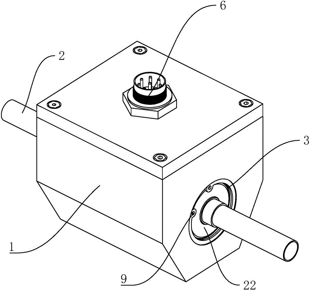 本实用新型公开了一种动态扭矩传感器,旨在提供一种具有便于安装维修的优点的动态扭矩传感器,其技术方案要点是,所述转轴上套设有衬套,衬套朝向转轴一面上设有大小与应变片相同的凹槽,应变片胶粘在凹槽内,其厚度大于凹槽高度,并与转轴表面抵接,应变片通过引线与外界连接,固定在衬套内的应变片起到的侧扭矩作用和效果与固定在转轴上相同,而需要维修和进行更换应变片时,可以直接将衬套从转轴上取下进行更换,这样不需要将线圈撤下,也不需要将引线完全剪断、取下并且更换,省却了操作人员的操作步骤,便于安装和维修。