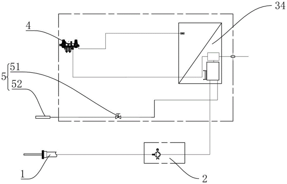本实用新型公开了一种便携式傅里叶红外热湿法烟气气体分析系统,包括采样探头、采样泵箱、分析仪车以及电气箱,采样探头、采样泵箱、分析仪车以及电气箱均独立设置;其中电气箱对应与采样探头、采样泵箱、分析仪车通过线路连接,探头依次与采样泵箱和分析仪车连通,将系统分拆成若干各部分,各个部分通过管路和线路进行连接,能够方便运输安装以及后期监测不同位置的烟气,同时系统还自带保护功能,通过减压和反吹烟气的方式够保护系统中分析仪以延长其使用寿命。