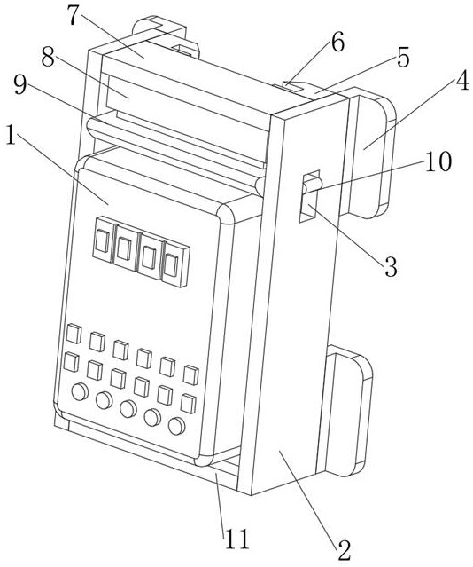 本实用新型公开了便于安装散热的调光箱,涉及调光箱技术领域;而本实用新型包括调光箱本体,调光箱本体的两侧对称设有限位板,两个限位板之间的上方固定连接有固定板,固定板的底部固定连接有弹簧伸缩块,弹簧伸缩块的底部固定连接有夹板;弹簧伸缩块的内部设有多个弹性良好的弹簧,弹簧伸缩可带动弹簧伸缩块伸缩,将导热板安装到调光箱本体的背部,导热板一方面吸收装置产生的热量,另一方面起到固定的作用,先将导热板的下端插入到支撑板的夹槽内,之后推动导热板的上端,导热板沿着夹板前端的弧面移动,弹簧伸缩块收缩,直到导热板的上端卡入到夹板上的夹槽内,夹板与支撑板将导热板夹持住,完成固定的作用。