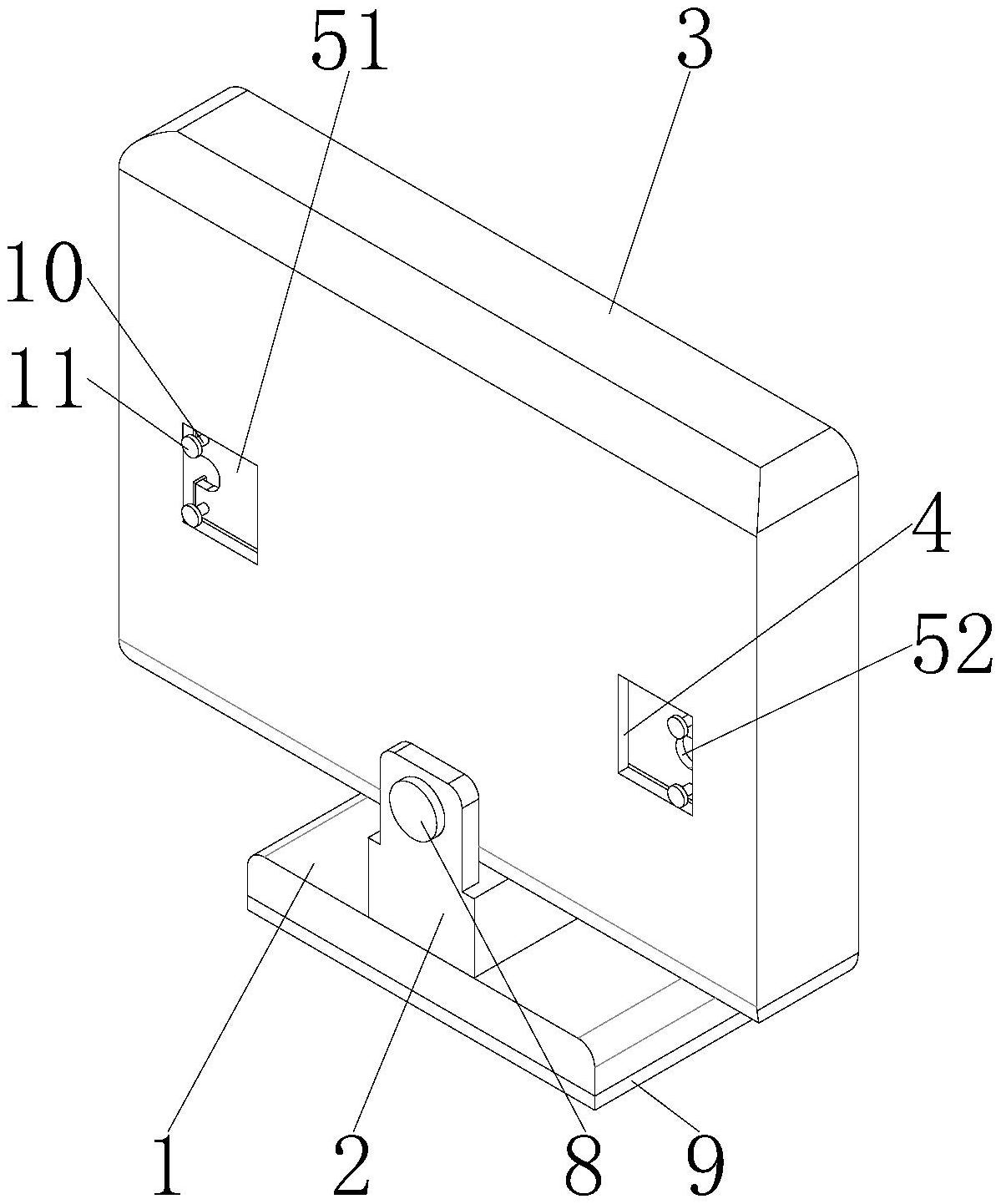 本实用新型公开了一种具有抗干扰能力的COB显示屏,包括底座,所述底座的顶部固定连接有支撑杆,支撑杆的顶部活动连接有显示屏机壳,显示屏机壳正面的两侧均开设有定线槽,定线槽的内部固定连接有固定机构,定线槽内壁背面的顶部和底部均固定连接有分离板。本实用新型通过设置固定机构,可以对定位槽内部的输出线进行固定,再通过分离板对输出线进行分离,避免输出线缠绕,从而达到了可以避免输出线缠绕相互干扰的效果,解决了现有的COB显示屏无法避免输出线缠绕相互干扰的问题,该具有抗干扰能力的COB显示屏,具备可以避免输出线缠绕相互干扰的优点,使用者在使用时不会出现电线缠绕相互干扰,从而保证使用者正常使用。