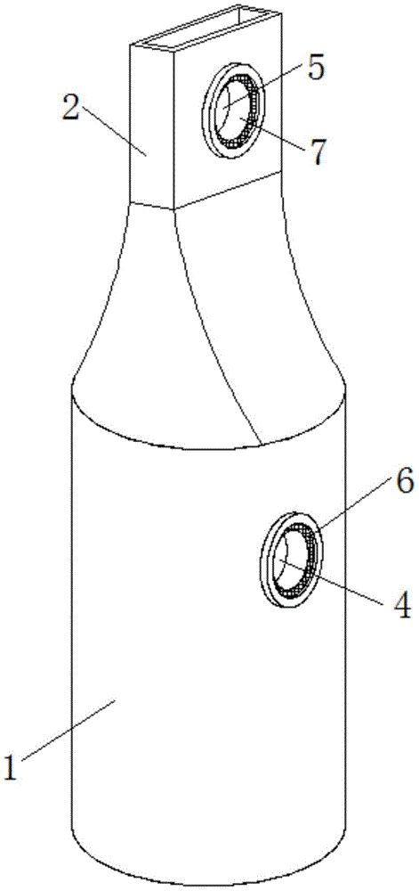 本实用新型公开了一种横杆长度可调式压扁束口套筒,包括连接套筒,所述连接套筒的外部上端固定连接有连接压扁束口,所述连接套筒内部的下端位置预设有连接螺纹,所述连接套筒外部上端的边侧位置预设有一级连接孔,所述连接压扁束口外部边侧的中间位置预设有二级连接孔,所述一级连接孔的内部内壁固定安装有一级适应环,所述二级连接孔的内部内壁固定安装有二级适应环。该横杆长度可调式压扁束口套筒,通过将整体设计为相互之间无缝连接的一体式结构,使其整体结构具有较好的紧凑性,可在满足不同使用情况下多种使用需求的基础上提升了整体的使用效果及工作性能,且通过增设了采用橡胶材质的适应环,可对不同外部规格的横杆进行稳定的适应插接。