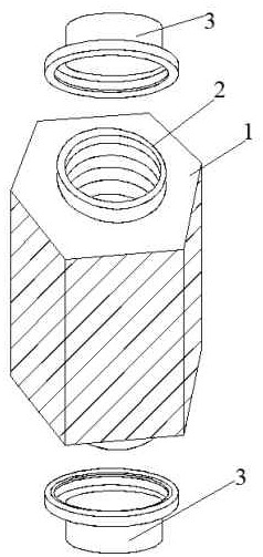 本实用新型提供一种多边形钢筋连接套筒,包括连接套筒主体、凸台、T型防水帽和锁紧抱箍,所述连接套筒主体的上下两端均设有凸台,所述凸台的内部和所述连接套筒主体的内部均设有与钢筋螺纹旋接的内螺纹,所述连接套筒主体的外部呈多边形状,所述连接套筒主体的上下两端凸台处均设有T型防水帽,T型防水帽直径较大的一端与所述凸台的外侧壁套接,所述T型防水帽较小直径的一端内壁设有锁紧抱箍,锁紧抱箍与所述T型防水帽粘合固定在一起。本套筒两端螺纹旋入钢筋,连接套筒主体为多边形,从而多边形可用扳手扳动,方便松和紧,钢筋固定性更好,体积小,节约材料,减少成本,通过T型防水帽和锁紧抱箍可对连接套筒主体进行有效密封防水防污。