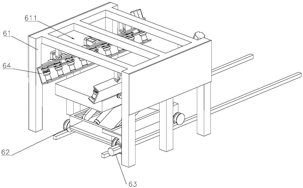 本实用新型属于板材加工技术领域,涉及一种板材自动涂胶设备的下料堆叠装置,包括:支撑架,所述支撑架的两内侧壁均设有安装槽,下料升降梯,承托机械手,用于将板材依次放置到下料升降梯上,和移动组件,用于驱动下料升降梯进行移动,所述移动组件位于支撑架的正下方,所述下料升降梯与移动组件固定连接,所述承托机械手固定连接在两个安装槽内。本实用新型通过承托机械手与下料升降梯的配合能够将涂好胶的板材自动下料并堆叠好,大大降低了工人的劳动强度。
