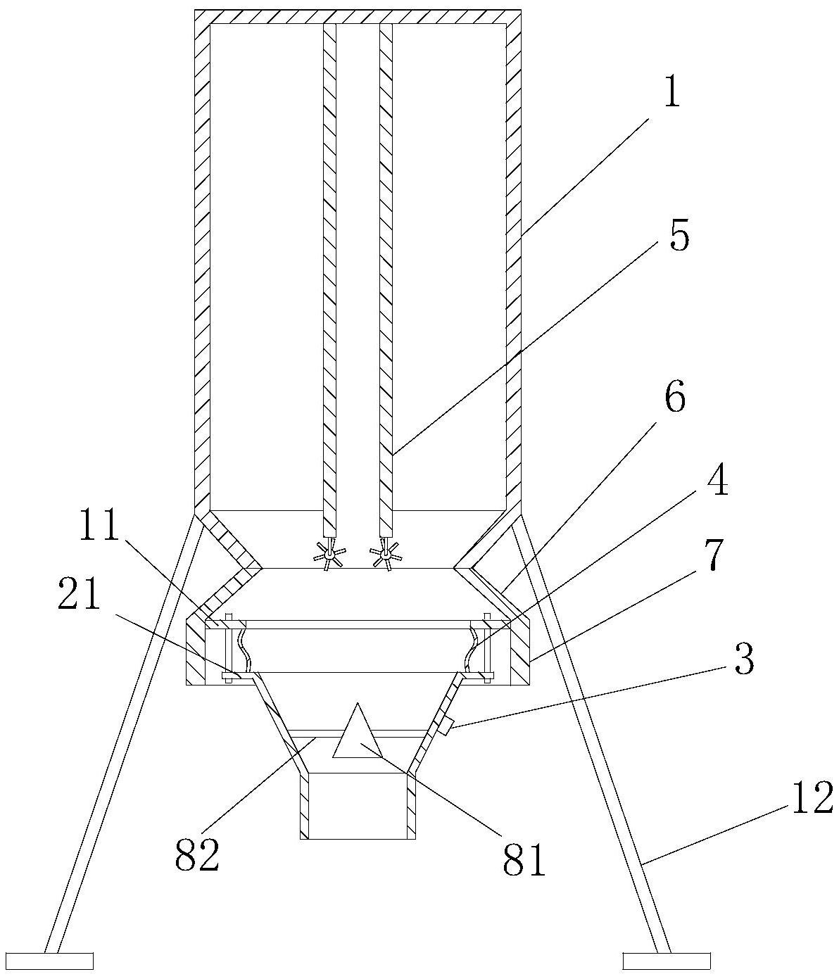本实用新型提供一种砂浆移动罐,该砂浆移动罐包括罐体(1)、位于所述罐体内的进料管(5)和位于所述罐体下方的下料锥体(2),所述下料锥体的外壁上设有振动下料装置(3),所述罐体的底部与所述下料锥体的顶部通过柔性连接件(4)密封连接,以使得所述振动下料装置带动所述下料锥体振动;所述进料管的出口端设有下料外散装置,该下料外散装置能够将所述进料管出口端的物料向其周围分散。本实用新型的振动下料装置只需带动下料锥体振动即可,只需较小功率的振动下料装置就能获得明显的振动效果;同时,在进料管的出口端设有下料外散装置,该下料外散装置能够降低起拱频率,配合柔性连接件,进一步提升出料效果。