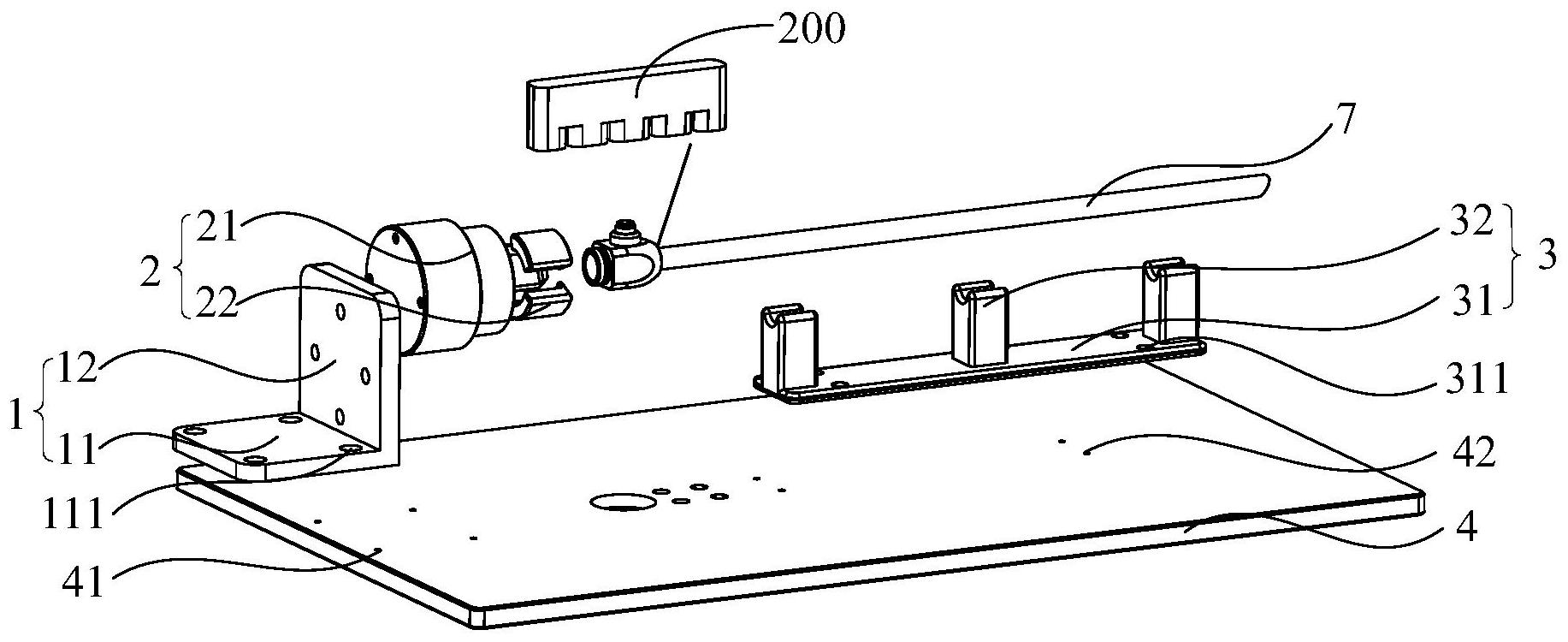 本实用新型涉及焊接设备技术领域,公开了一种内窥镜焊接夹具及内窥镜焊接组件,内窥镜焊接夹具包括支座、卡盘和外管支架。卡盘包括主体部和卡接部,主体部连接于支座,卡接部与主体部连接,且可绕主体部的轴向旋转,卡接部适于夹紧内窥镜的基座背离外管的一端,外管支架适于支撑内窥镜的外管。内窥镜焊接夹具可以通过自动控制卡盘的卡接部的旋转角度和速度,并且可以使焊点均匀准确地落在基座的第一管道接口与外管之间的缝隙处,有利于提高焊接质量,保证焊接的密封效果。