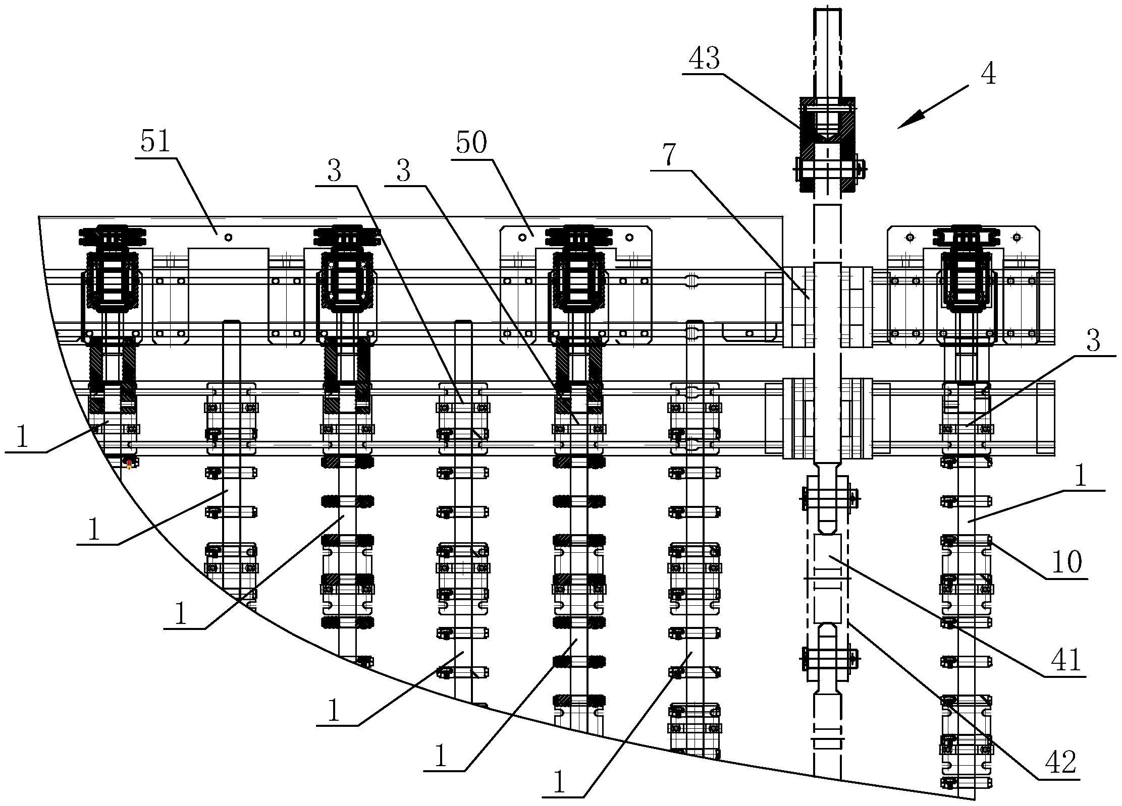 一种软轴支座交错排布式变弧运输装置