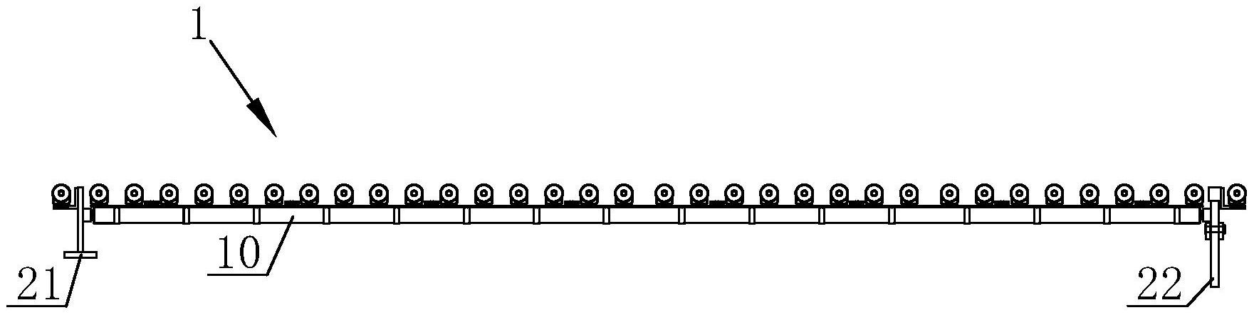 本实用新型公开了一种渐变成型结构,包括渐变段、软轴和弹性钢板,渐变段包括固定板、支撑管、球铰机构和变弧机构,球铰机构包括滑腔、滑杆、球接头和球接孔,球接孔和滑腔分别位于球铰机构的两端,球接头固定在滑杆的一端,两个球铰机构的一端分别设于支撑管的两端,支撑管两端的球铰机构分别连接固定板和变弧机构,弹性钢板位于软轴和支撑管的中间,在玻璃成弧的过程中,由支撑管带动弹性钢板弯曲,球接头在球接孔内旋转,滑杆远离球接头的一端在滑腔内移动,使支撑管两端所受到的拉力减小,从而降低弹性钢板受到的扭矩和弯矩,使弹性钢板的使用寿命更长。
