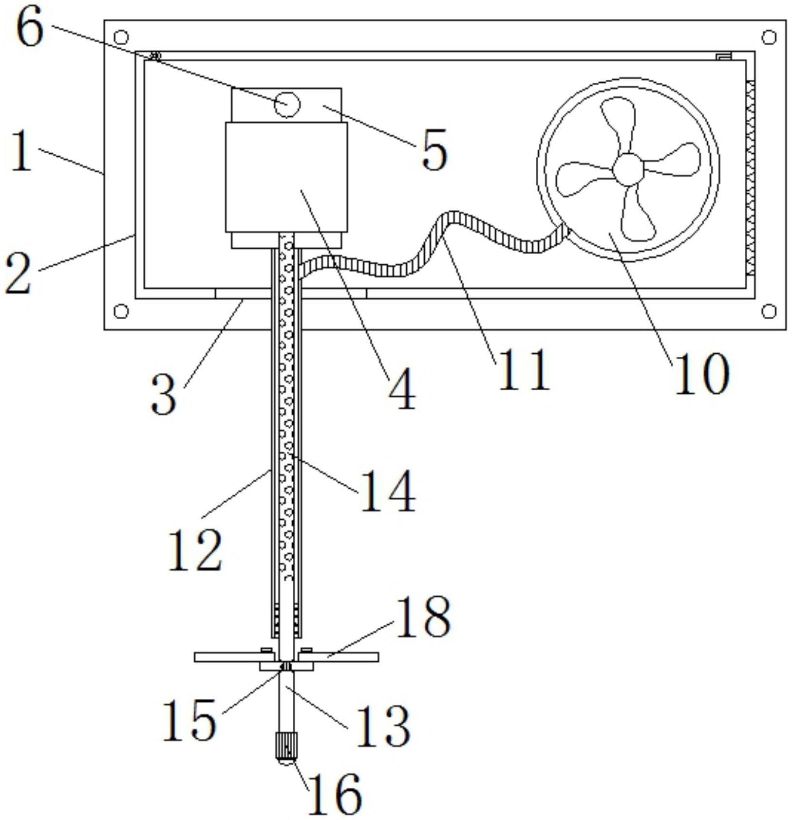 本实用新型公开了一种推流式搅拌曝气机,涉及曝气机技术领域,包括安装板,所述安装板的一端固定有固定框,且固定框的底部设置有通孔,所述固定框的内部转动连接有固定架,且固定架的两端皆固定连接有与固定框转动连接的连接轴,所述连接轴的末端固定有轮盘,所述固定框的一端设置有刻度盘,且刻度盘的内侧设置有螺纹孔。本实用新型通过轮盘带动连接轴和固定架转动,使固定架带动驱动电动机转动角度,使轮盘上的卡孔与螺纹孔相互对应,便于对轮盘进行限位固定,从而辅助叶轮的倾斜角度,进行搅拌操作,且通过搅拌管上缺口的位置和安装环相对应,使安装环上的安装孔和叶轮上相对应,可以进行叶轮数量的增减和便于进行更换操作。