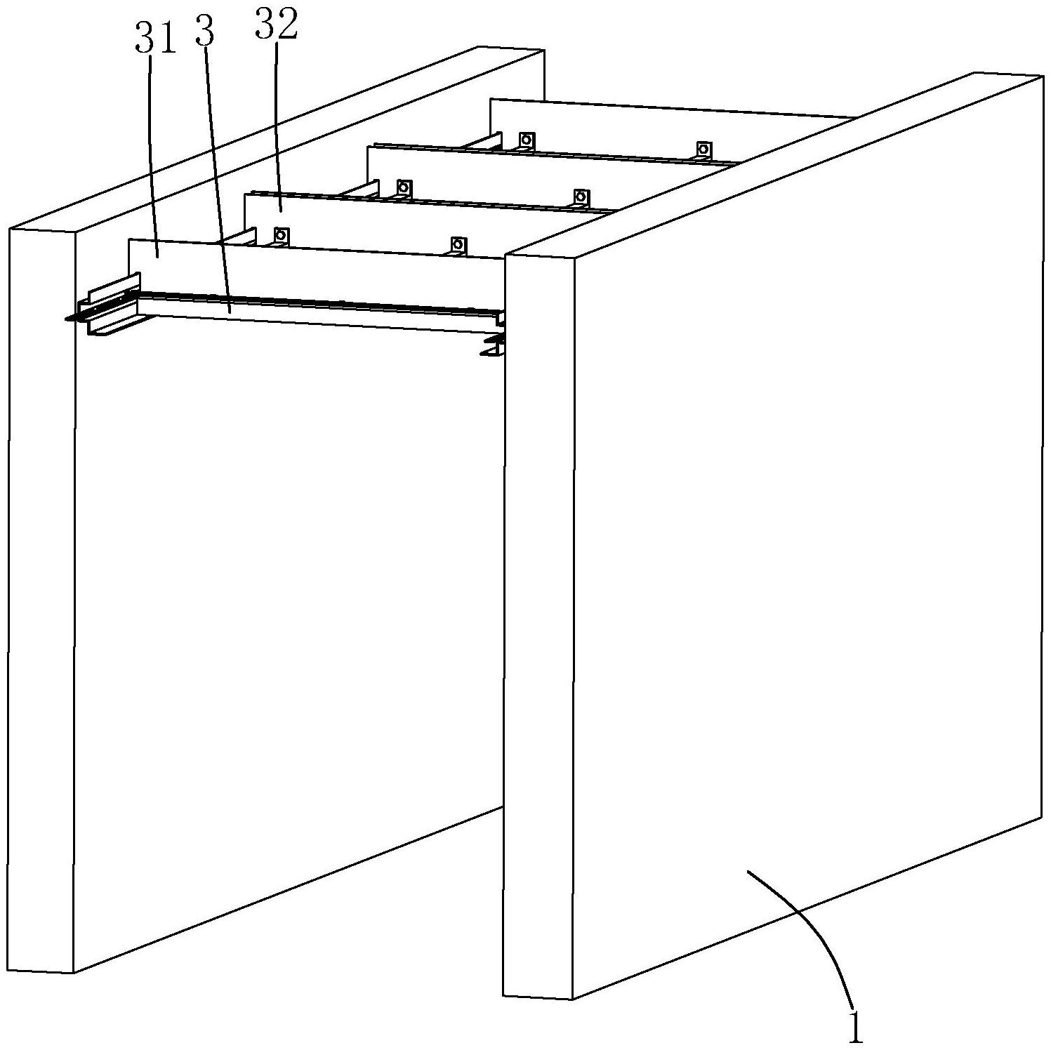 本实用新型涉及一种无吊点走廊系统,涉及建筑装饰的技术领域,包括两根截面为U形的槽钢,槽钢包括第一板、第二板和第三板,第二板和第三板分别固接在第一板的两侧,第二板位于第三板的上方,两根槽钢分别设置在走廊两侧的墙壁上,两根槽钢等高设置,且两根槽钢均沿走廊的长度方向布设,两根槽钢的开口相对,两块第一板分别与走廊两侧的墙壁平行,第一板与墙壁之间通过穿设多个固定螺栓固定在一起,两根槽钢之间设置有多块矩形的天花板,天花板的两侧分别设置有第一固定板和第二固定板,第一固定板的两端分别搭设在两块第二板上,第二固定板的两端分别搭设在两块第二板上。具有方便在走廊上安装的优点。