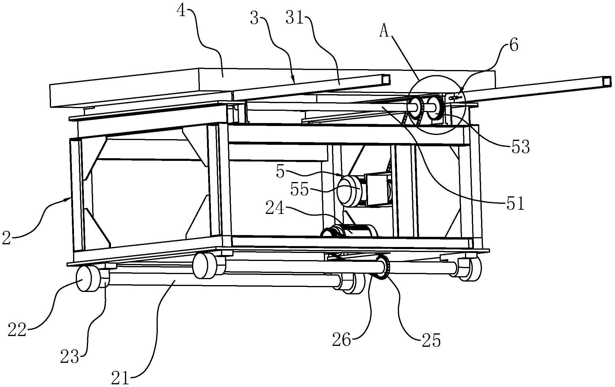 本实用新型涉及一种冲孔磨具辅助工装设备,其包括运输架,运输架的上表面设置有两条平行的滑轨,滑轨上设置有与其滑移连接的承托框,运输架上设置有驱使承托框沿滑轨的长度方向往复移动的驱动组件,运输架的下表面转动连接有与滑轨垂直布设的两个转杆,每个转杆的两端均同轴固接有滚轮,运输架上设置有控制其中一个转杆转动的第一电机。本实用新型具有的优点是辅助工作人员对冲孔磨具进行工装,减小工作人员对冲孔磨具进行工装的工作强度。