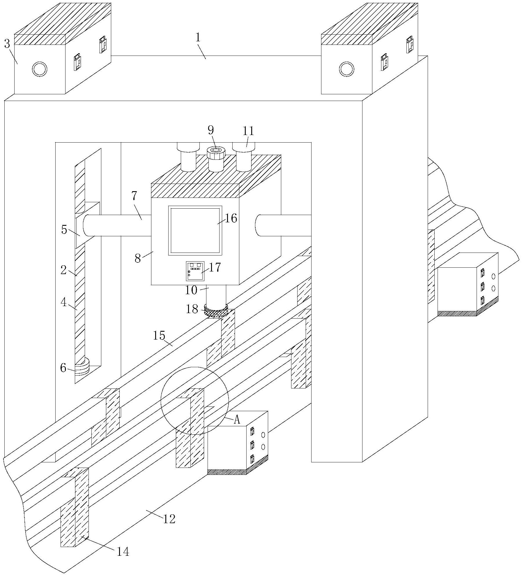 本实用新型公开了一种肥料加工生产的灌装设备,涉及肥料加工技术领域。包括机架,所述机架的一侧开设有活动槽。通过设置活动槽与位移块形状的匹配可以使得位移块可以在活动槽中活动设置,便于罐装机箱的升降和稳定,使得罐装机箱底部的罐装口能够正对着需要罐装的容器,高效有序,并且连接杆的对称也能辅助罐装机箱的稳定,增强设备的罐装能力,控制面板使得工人能够灵活调控罐装机箱在进行罐装中所注入的量,以此来调节在对不同容量的容器中所罐装的肥料量,增加设备的适用能力,并且通过橡胶层,可以防止罐装口在罐装时肥料出现残留的概率,而且橡胶层能够在出入容器时,会产生一个小型的压力场,增强罐装设备的罐装能力。