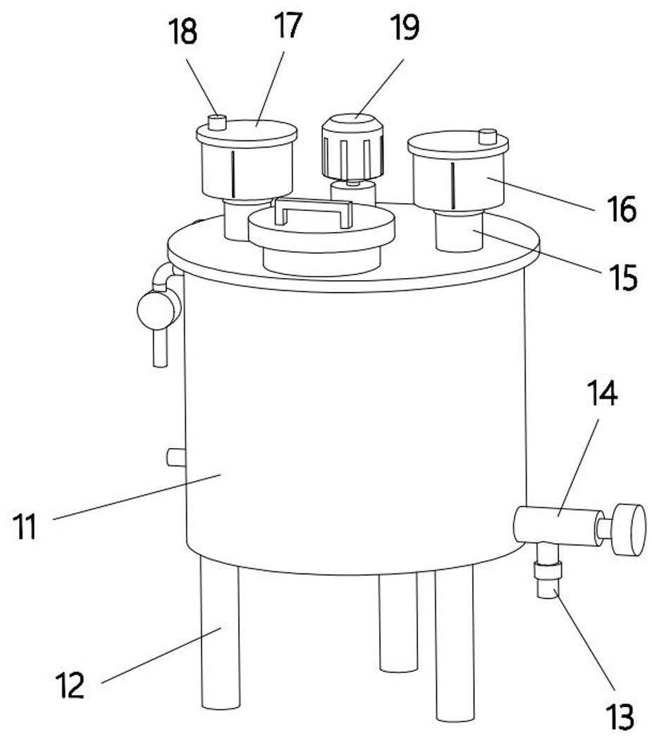 本实用新型公开了一种螯合微量元素水溶肥料用的稀释装置,包括稀释罐和进料组件,所述稀释罐底部连接有三组支腿;所述进料组件包括设置在稀释罐顶部的储料瓶和投料管,所述储料瓶底部连接进料管,所述进料管上设有电磁阀,所述进料管和投料管均与稀释罐内腔连通,所述储料瓶远离进料管一侧连接顶盖,所述顶盖上设有密封塞;本实用新型中的出料组件,能防止稀释罐底部突出或管道设置在底部造成固态物料堆积,且输出管内设有密封件,能使堵住输出管靠近稀释罐的一端,使稀释罐内的物料不会进入输出管或出料管内,便于稀释罐内物料有效的进行混合和稀释,储料瓶顶部连接有顶盖,便于对储料瓶密封,防止杂质进入。