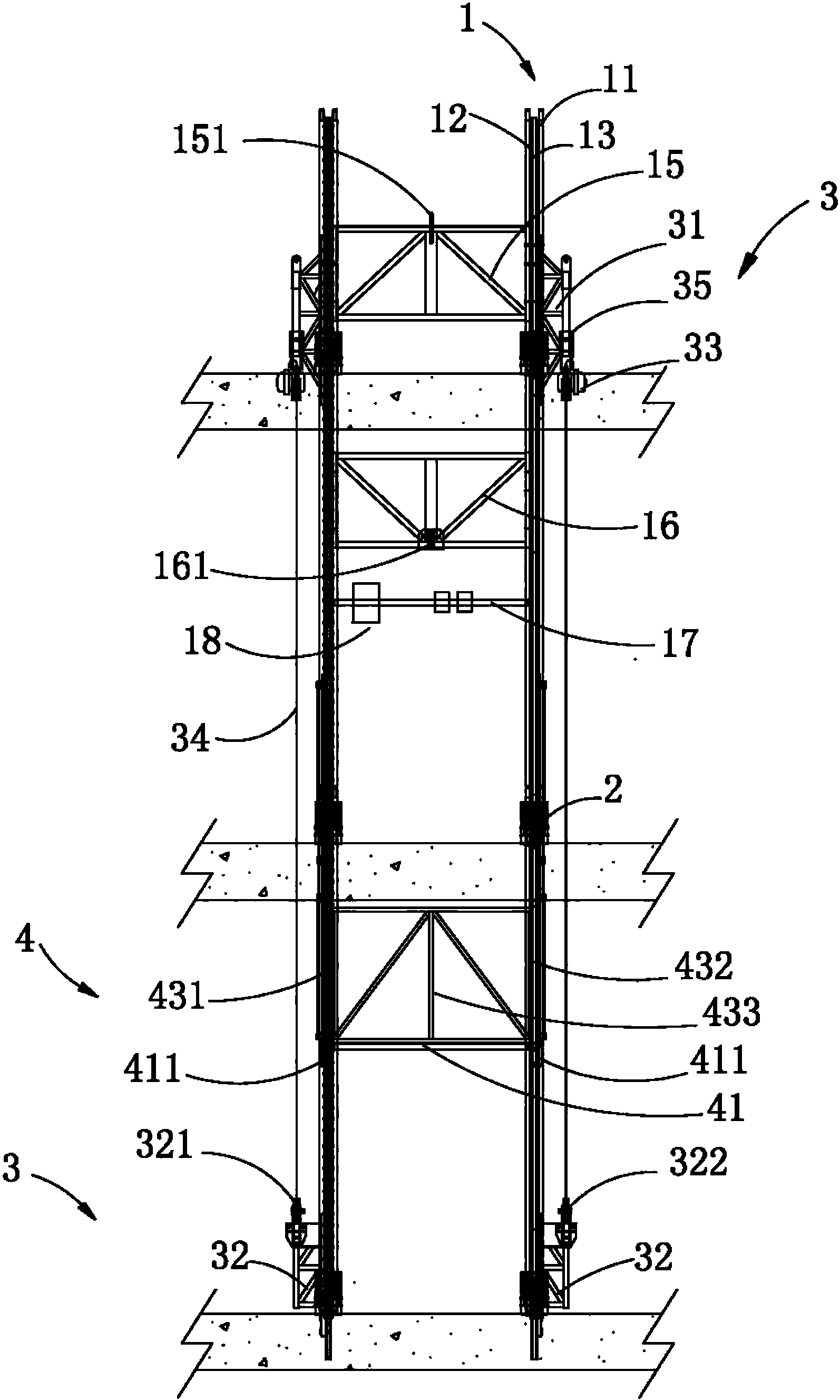 本实用新型提供了一种工具化附着式物料自动爬升机构,固定于结构梁上,所述爬升机构包括相对设置的两导轨、附墙组件、固定于所述两导轨相对外侧的升降组件及物料平台,所述附墙组件固定于所述结构梁上,所述两导轨分别穿设于所述附墙组件内,所述升降组件包括电动葫芦、定滑轮及提升绳,所述电动葫芦通过上吊点桁架设于所述两导轨的上部,所述滑轮设于所述两导轨的下部,所述提升绳与所述电动葫芦的副钩连接,所述提升绳绕过所述定滑轮固定于附墙吊挂件上,所述附墙吊挂件固定于所述结构梁上,所述物料平台固定于所述两导轨之间,所述物料平台随所述导轨运动而上下运动。本实用新型结构简单、使用方便,可周转使用,实用性较强。