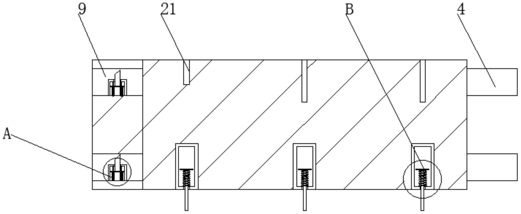 本实用新型涉及隔音技术领域,且公开了一种环保型隔音板,包括板体,所述板体内部固定连接有固定机构,所述板体右侧固定连接有第一插块,所述第一插块内部开设有固定孔,所述板体左侧开设有插槽,所述板体底部固定连接有热熔胶层,所述固定机构包括固定槽,所述固定槽固定连接于插槽内正端,所述插槽内部滑动连接有第二插块,所述第二插块正端固定连接有压板,所述压板左右两侧滑动连接有限位杆,所述限位杆外围套接有第一弹簧,所述板体正面内部滑动连接有固定杆,所述固定杆背端固定连接有限位板,所述固定杆外围套接有第二弹簧。该环保型隔音板,通过设置的固定机构能够使该装置更加方便安装,便于使用。