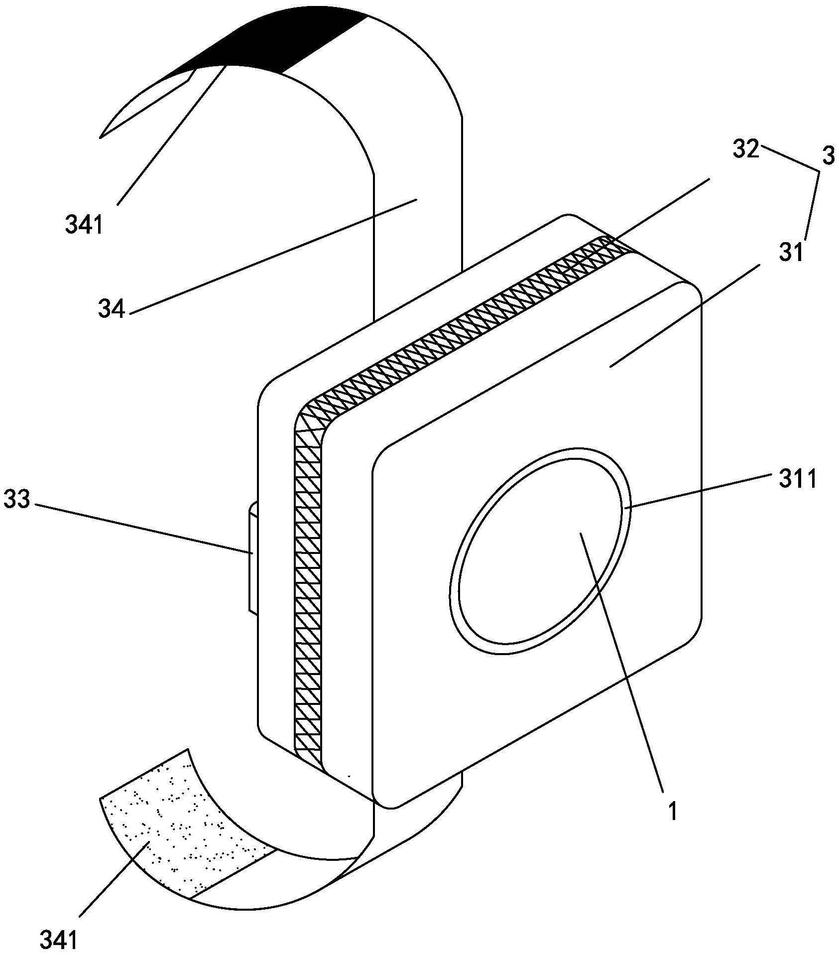 本实用新型公开了一种琴包内用温湿度计固定装置,其包括温湿度计、缓冲垫和放置袋,所述缓冲垫上设有与所述温湿度计的外形相适配的容腔,所述温湿度计可内嵌在所述容腔内,所述放置袋设有袋体和拉链,所述袋体的其中一侧面设有开口,所述缓冲垫可放置在所述袋体内,并且所述温湿度计的显示屏可通过所述开口外露;所述袋体的另一侧面缝制有连接带,所述连接带与袋体之间设有让位部,两端分别设有对应的魔术贴的固定带可穿过所述让位部,所述固定带可拆卸地连接在琴上。本实用新型的有益效果是,温湿度计的显示屏露出可以让使用者快速的了解琴包内的温湿度,从而对琴进行保养,有效提高琴的使用寿命。