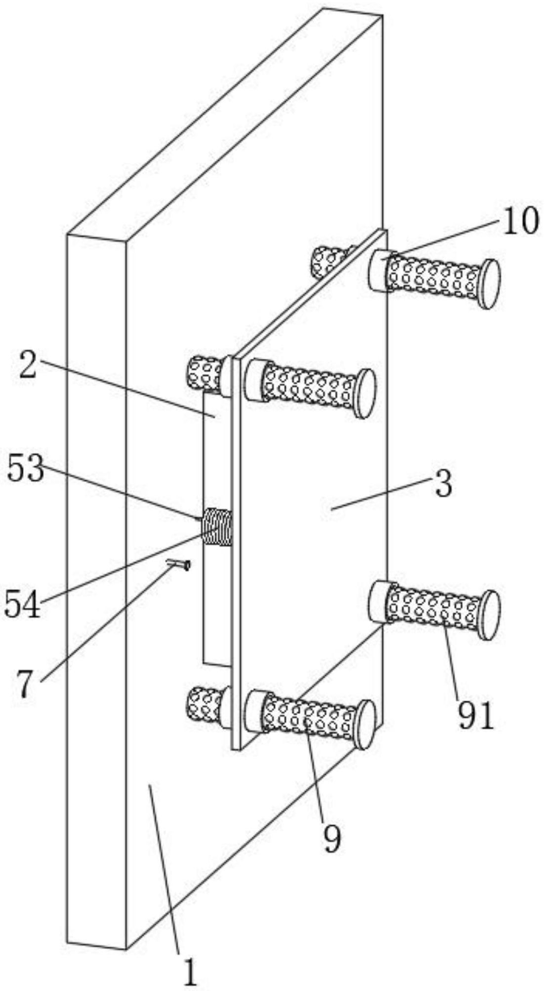 本实用新型公开了一种变电站泄爆墙,包括墙体、限位组件和牵引组件;墙体:其中部设有通槽,通槽的内壁插接有泄爆板,泄爆板的右侧面设有连接板;限位组件:对称设置于泄爆板的侧壁,限位组件分别与墙体内壁设置的插孔插接,所述限位组件包括滑槽、弹簧一和T型滑块,所述滑槽对称设置于泄爆板的侧壁,滑槽的内壁均滑动连接有T型滑块,弹簧一设置于滑槽靠近墙体中心的侧面和T型滑块之间,T型滑块的外侧端头为楔形结构;牵引组件:对称转动连接于墙体的前后两端内部,牵引组件与连接板的左侧面固定连接,该变电站泄爆墙,变电站泄爆墙,泄爆迅速,避免对外部物体造成冲击,便于循环利用。