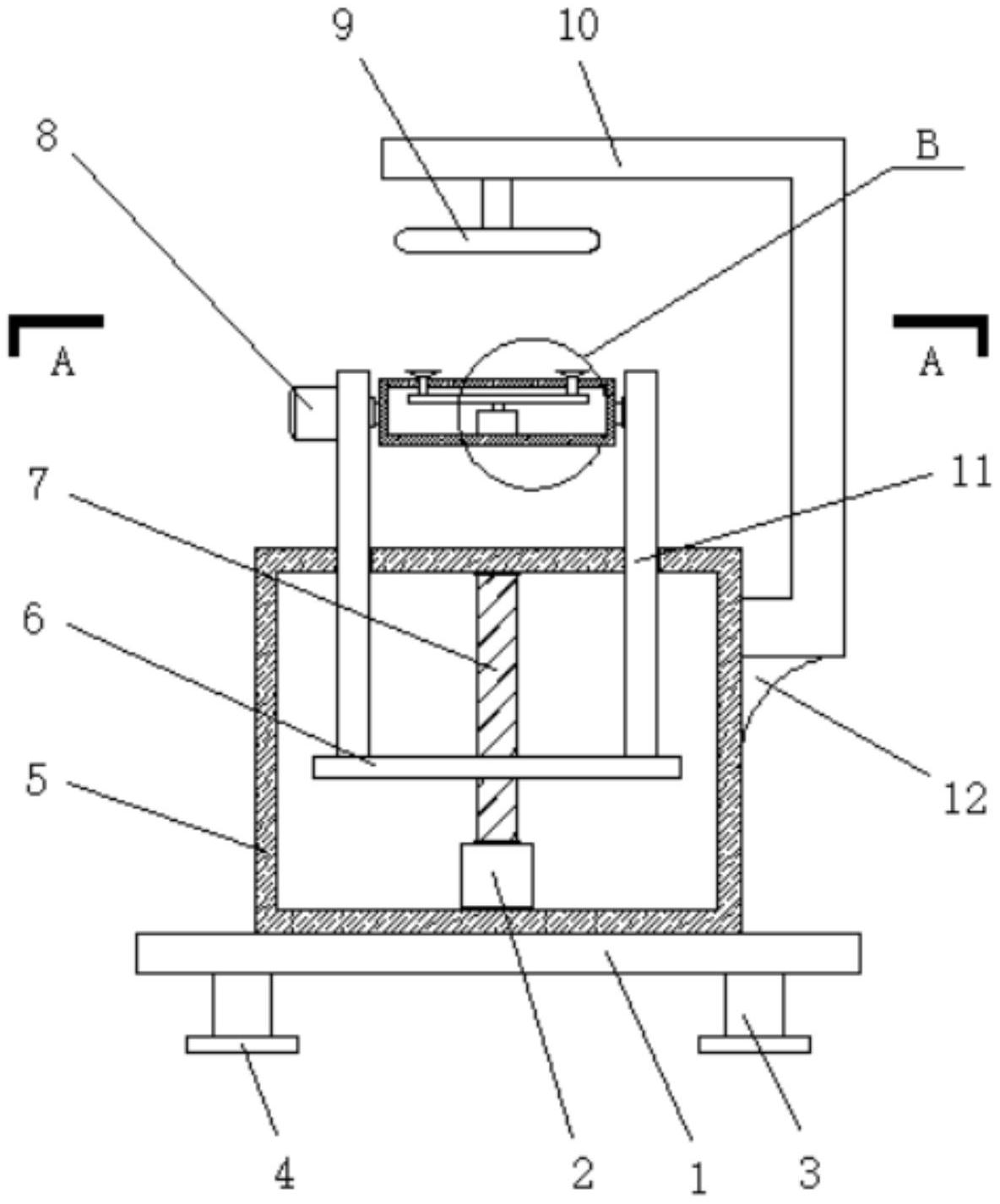 本实用新型公开了一种通过光干涉原理检测玻璃钢化程度的应力仪,包括底板,所述底板的顶部固定安装有固定底座,所述固定底座的内部设置有空腔,所述固定底座内侧的底部固定安装有第一电机,所述第一电机的输出端固定安装有螺纹杆,所述螺纹杆的一端与所述固定底座内侧的顶壁活动连接,所述螺纹杆的外表面螺纹套接有活动板,所述活动板的顶部固定安装有两块固定板,且两块所述固定板为对称分布,两块所述固定板的顶部均延伸至所述固定底座的顶部,其中一块所述固定板的左侧固定安装有第二电机,两块所述固定板之间活动安装有固定座。本实用新型通过设置一系列的结构使得本实用新型具有调整高度和角度的作用。