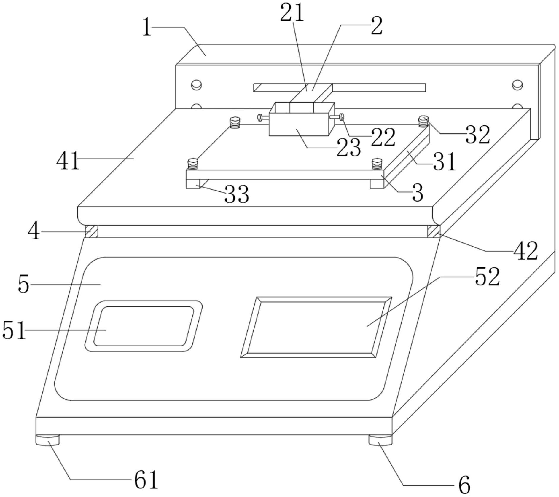 本实用新型公开了一种反复式摩擦测试仪,包括设备本体,设备本体的上端设置有用来夹持配重块的夹持结构,设备本体的顶部的一侧连接有对待测物体固定的实验结构,实验结构的下端设置有用来调节平衡的水平结构a,设备本体的中部设置有用来进行控制和显示数据的显示控制结构;本实用新型通过设置载物盒,通过载物盒两侧设置有固定螺栓,对其内部的配重块进行固定,同时还可以根据配重块的形状大小随时调节载物盒的大小,适用范围更广,通过设置水平柱a与水平柱b,采用水平柱a和水平柱b相结合的方式进行设备的平衡,增强了平衡能力,在产品中心偏离实验板中心时,能够克服受力不均衡的状况,使其测试结果更加准确。