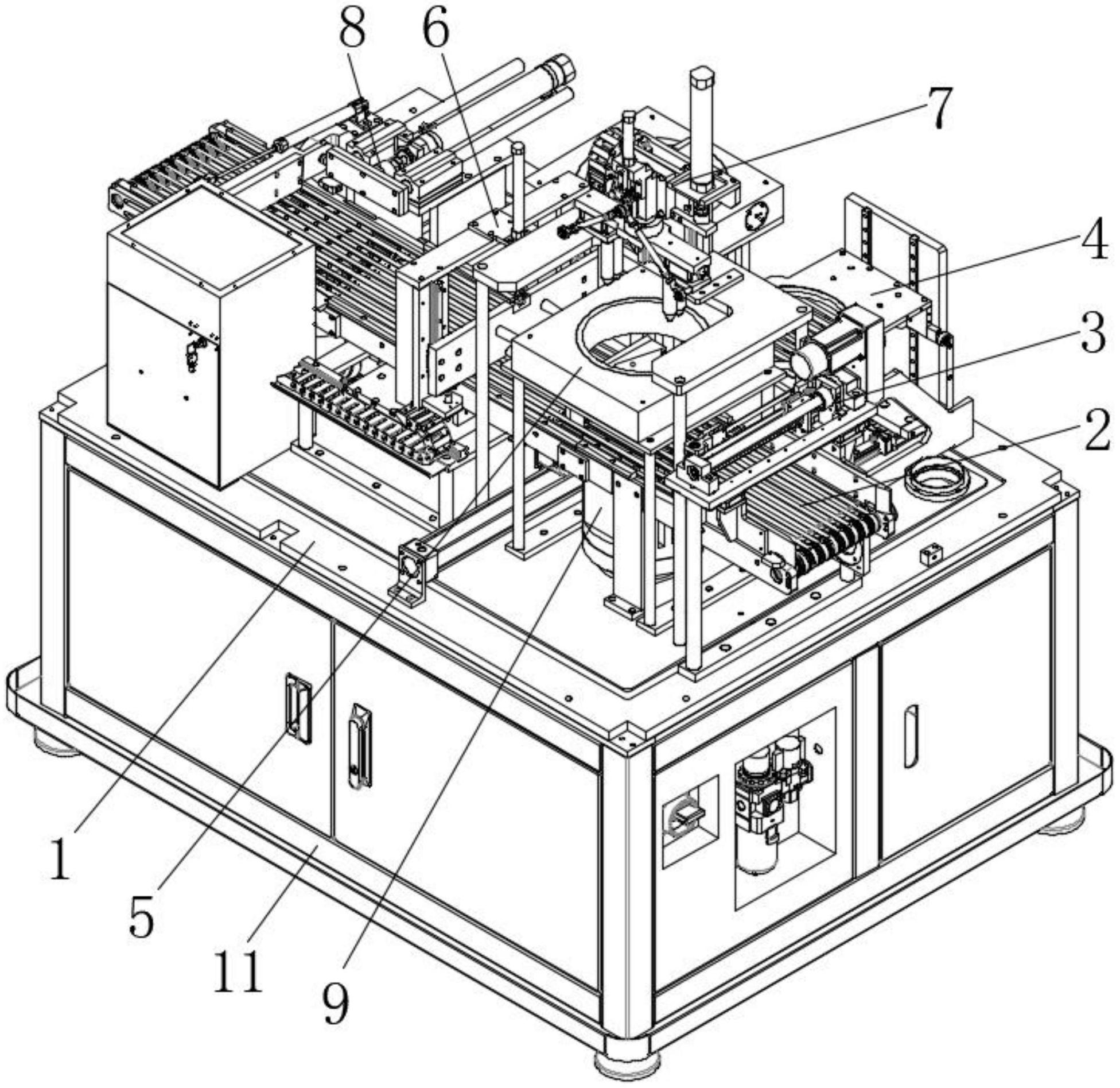 本实用新型涉及一种工件质量自动检测设备,包括工作台和输送机,所述输送机安装在工作台的顶部,所述输送机的输送带顶部依次安装有对中机构、检测探头和挡料机构,所述对中机构安装在工作台的顶部,且位于输送机的输入端顶部,所述检测探头通过支架安装在工作台上,且位于输送机的中部靠近输入端一侧,所述检测探头的顶部安装有定位机构,所述挡料机构通过支架安装在工作台的中部,且位于安装在输送机的中部。本工件质量自动检测设备能够针对不同工件、不同型号的工件使其处于一个合适的检测范围内,通过这一套设备,来使不同工件、不同型号的工件都可以在同一套检测设备中通用,提高质量检测的工作效率。