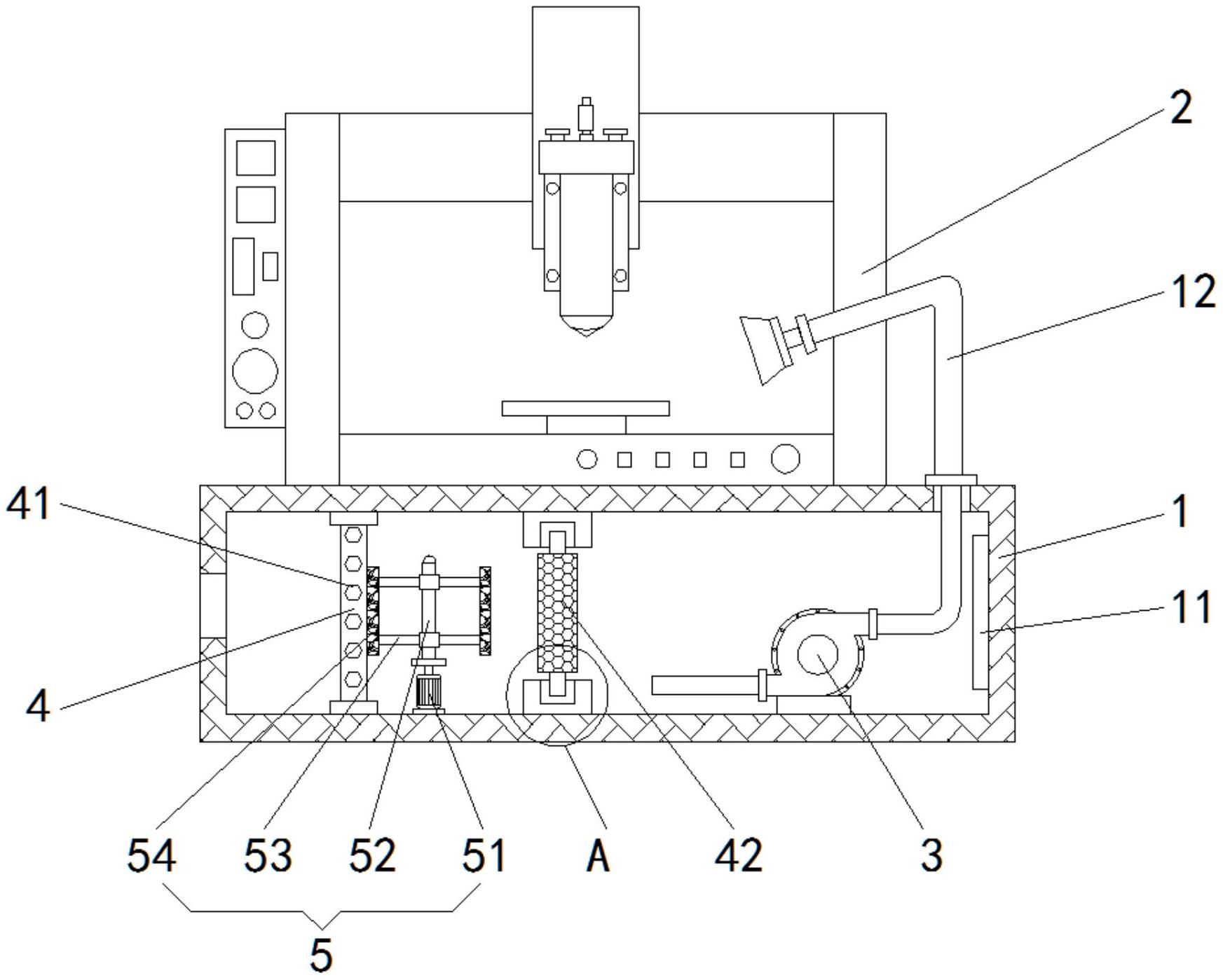 本实用新型一种新型全自动涂胶机的快速烘干装置,包括加热箱,所述加热箱的顶部固定安装有自动涂胶机本体,所述加热箱的内部固定安装有一端贯穿并延伸到加热箱顶部的吹风机构,所述加热箱的内部且位于吹风机构的左侧固定安装有过滤机构,所述加热箱的内底壁且位于过滤机构的内部固定安装有与过滤机构相接触的清灰机构,所述清灰机构包括清灰机构包括电机、旋转杆、横杆和毛刷。该新型全自动涂胶机的快速烘干装置,具有自动疏通过滤网的功能,在烘干装置长期的使用中,过滤网上会粘有大量的灰尘,本装置可以自动进行疏通,不会被灰尘堵塞住,避免了灰尘过多将过滤网堵死而导致风力减小的情况发生,提高了吹风烘干的效率。