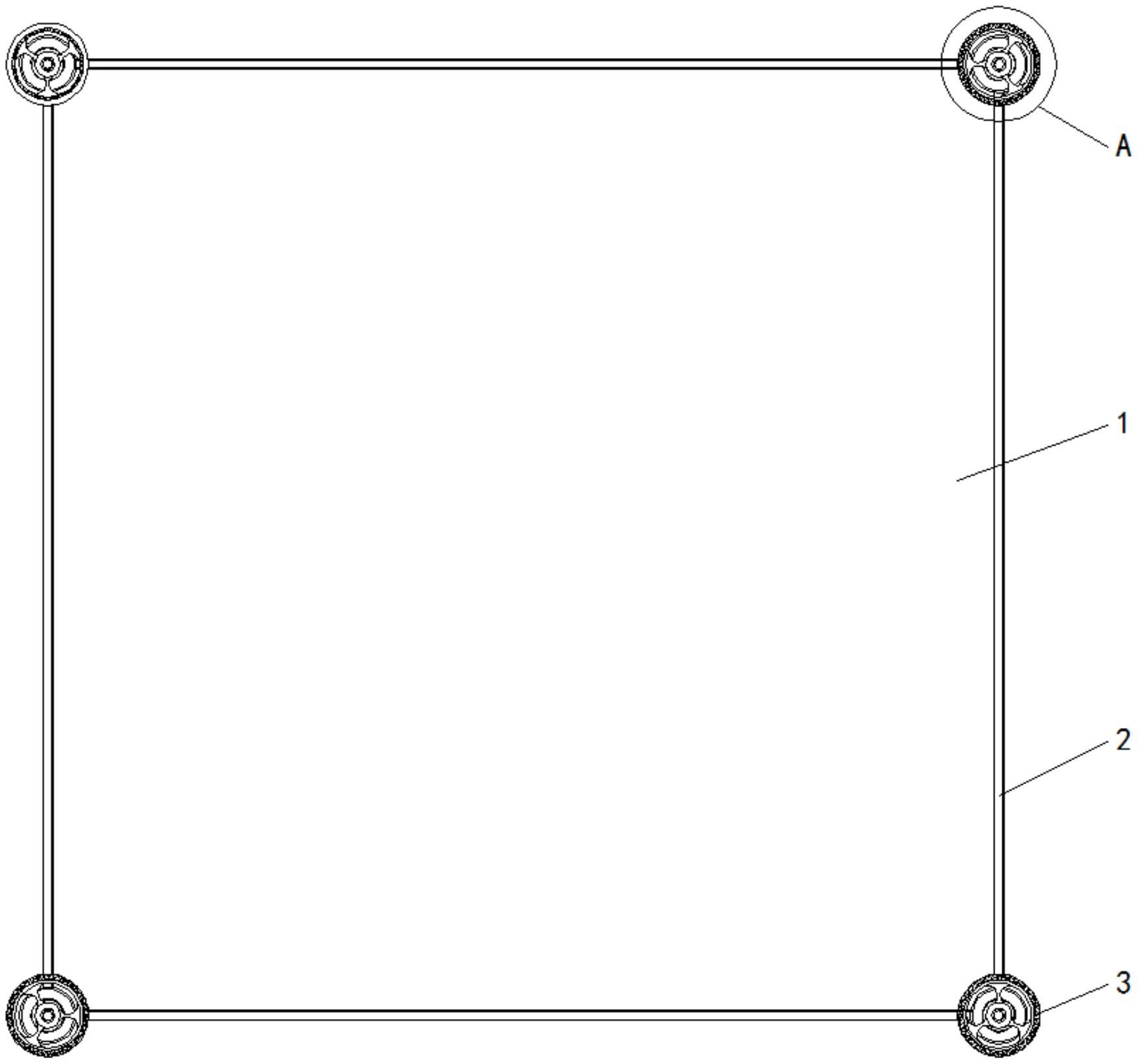 本实用新型涉及一种新型建筑用夹胶玻璃,包括夹胶玻璃主体,所述夹胶玻璃主体的外壁设置有防护组件,所述防护组件的外壁设置有滚轮,所述防护组件包括边框,所述边框的外壁设置有压盖。该新型建筑用夹胶玻璃,通过边框和压盖对夹胶玻璃主体进行限位及固定,再通过边框和压盖上的第一缓冲垫和第二缓冲垫对夹胶玻璃主体进行缓冲保护,避免夹胶玻璃主体在转运过程中造成磕碰、划伤或损坏的情况发生,从而提高了该夹胶玻璃的防护性能,同时通过滚轮便于将待夹胶玻璃主体进行移动,从而减少人工搬运或道具的使用,进一步提高了该夹胶玻璃的转运便利性,达到简单方便高效防护及转运的效果。