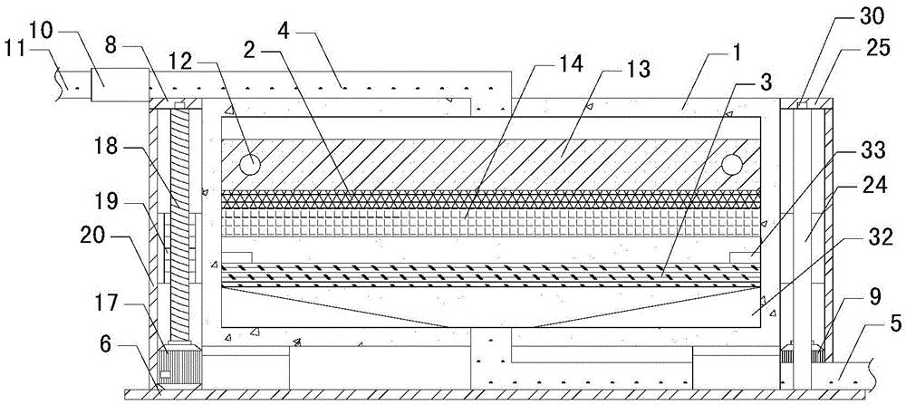 本实用新型涉及环保设备的技术领域,特别是涉及一种地埋式污水处理设备,其可方便定期对箱体内部进行清洁和维修,避免过滤下来的污物长时间堆积在过滤板上,保证过滤板的正常使用,提高使用可靠性;包括箱体、过滤板、活性炭板、输入管、输出管、底座和支架,活性炭板设置在过滤板下方,输入管和输出管分别连通设置在箱体顶端和底端上;还包括第一保护罩、第一提升件、第二保护罩、第二提升件、丝扣、进水管、驱动件、刮板和两组网板,支架包括四组支块和四组缓冲垫,第二提升件位于第二保护罩内侧,箱体右端与第二提升件连接,两组网板分别倾斜设置在过滤板前后两端上,刮板下侧面与过滤板上侧面接触,输入管和输出管均为软管。