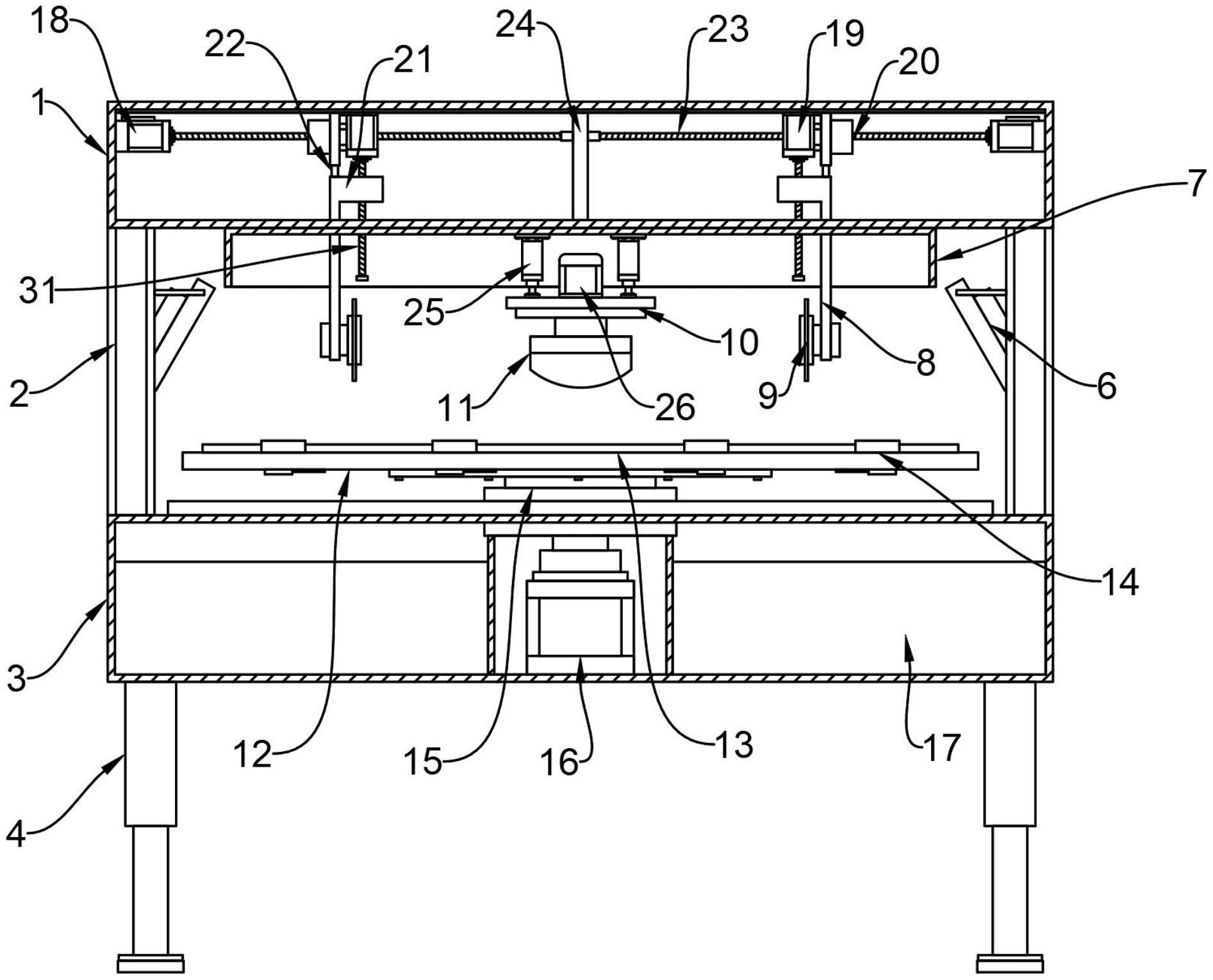 本实用新型公开了一种中空玻璃加工装置,涉及玻璃加工领域,为解决现有技术中的现有的加工设备不方便对玻璃板材进行固定和移动,使用不便,影响工作效率的问题。所述上固定箱的下方安装有连接板,所述连接板的下方安装有抛光球,所述抛光球的两侧均安装有切割刀具,所述切割刀具的下方安装有装置壳体,所述装置壳体的上方安装有工作台,所述工作台的上端面设置有玻璃板,所述玻璃板的外部安装有夹板,且所述工作台的下端安装有转轴,所述装置壳体的下方安装有支腿,所述上固定箱的内部安装有移动块,所述移动块的下方安装有支撑杆,所述支撑杆与移动块设置为一体结构,且所述支撑杆与切割刀具固定连接,所述移动块的上端安装有抽板。