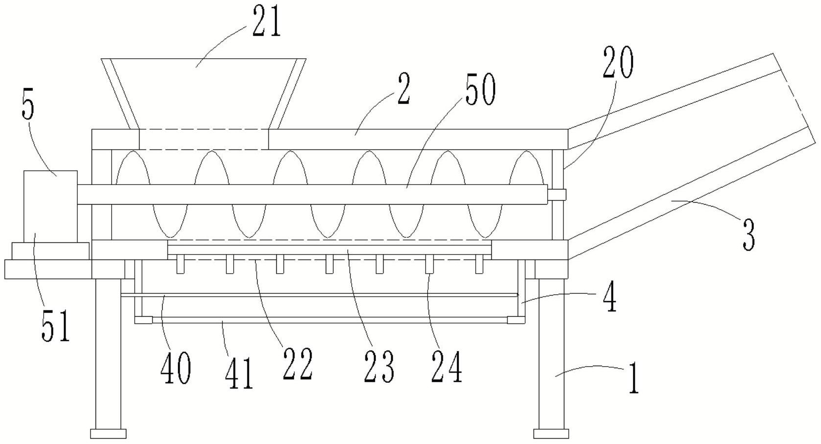 本实用新型公开了一种高效栅渣脱水装置,包括机架、水平输送管、压榨管、集水箱和螺旋搅拌组件,水平输送管设在机架上,水平输送管内设有限位架,上端设有进料斗,下端设有通孔,通孔内设有过滤网板;压榨管倾斜向上设在水平输送管的开口端;集水箱设在水平输送管下端,且与通孔导通,集水箱内设有冲洗管,冲洗管上设有冲洗喷头,集水箱下端设有活动滤网,侧壁上设有卸料门;螺旋搅拌组件包括搅拌螺旋和动力电机,搅拌螺旋设在水平输送管内部,且与限位架卡接,动力电机为搅拌螺旋提供动力;本实用新型结构设计合理,栅渣脱水效率高,且运行效果稳定可靠,适宜大量推广。