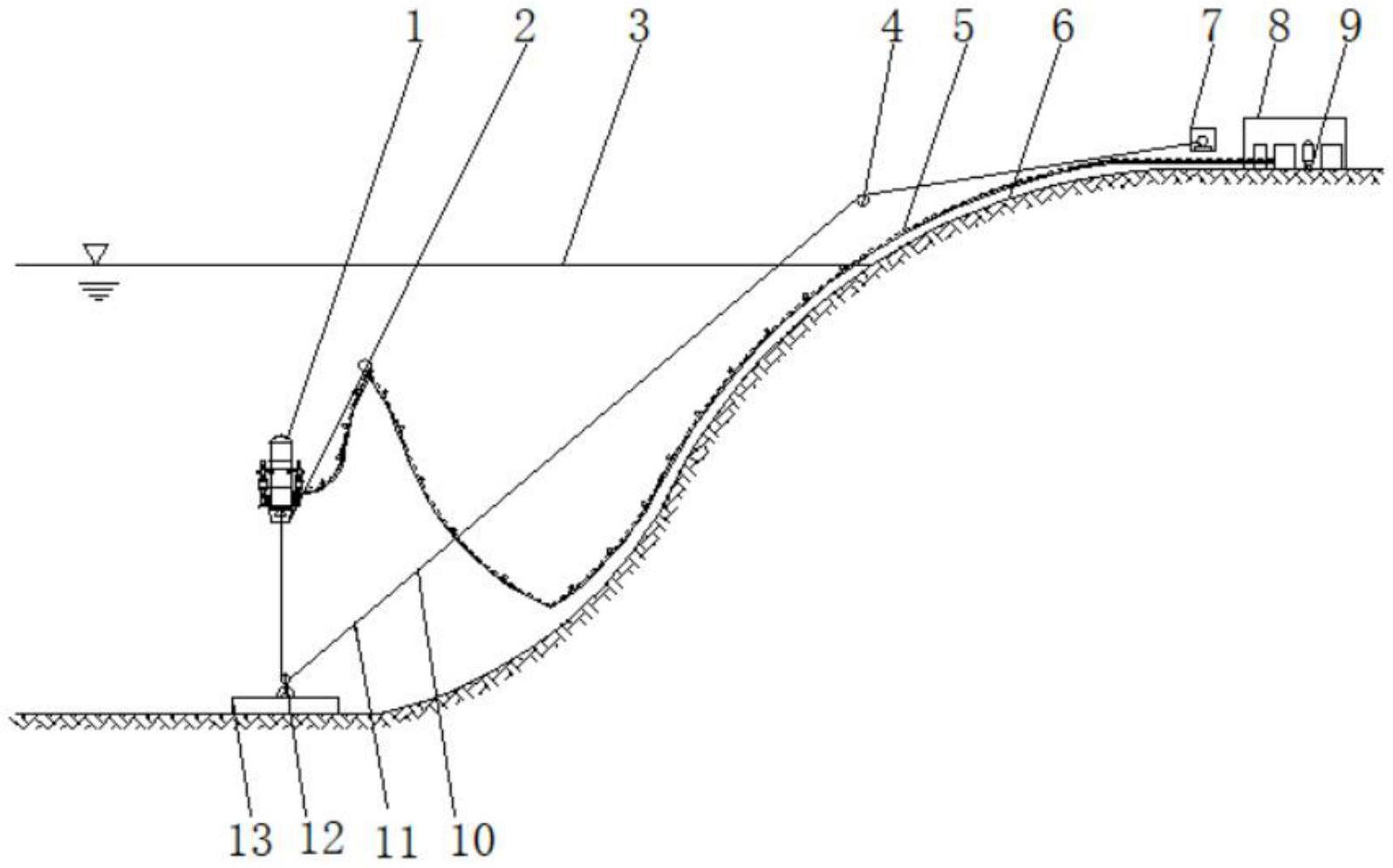 本实用新型公开了一种抑制水体底层污染释放的高效无气泡增氧装置,包括坝体和水库本体,所述坝体的一侧设置有水库本体,所述坝体的顶部一侧设置有岸上制氧系统,所述岸上制氧系统的一侧坝体顶部固定安装有收卷电机,所述收卷电机的一侧坝体上通过转动支架安装有限位滑轮。本实用新型深层高效无气泡增氧装置,核心主体设备安装在水体底部,通过气水混合向底层水体释放高浓度溶解氧,提升底层氧浓度,改善缺氧环境,本实用新型是利用水压使纯氧和水的混合,向水体底部释放高浓度溶解氧水,不产生气泡扰动,靠水层密度及温度差实现稳定扩散增氧,不破坏水层结构,同时能够提供大量溶解氧实现水体底部缺氧状态的改善,抑制底泥污染物的释放。
