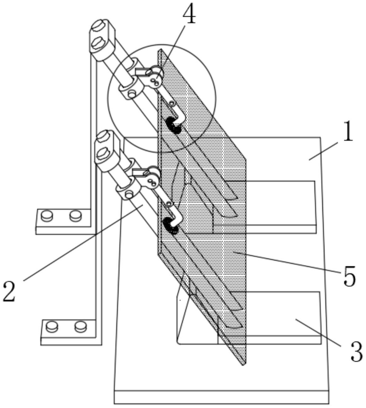 本实用新型公开了一种大尺寸玻璃检验翻面斜靠背治具,包括底板、斜靠管、固定机构和玻璃片,所述底板上表面倾斜安装有多个斜靠管,斜靠管为PVC管,且斜靠管表面缠绕高温胶带和铁氟龙胶带,可避免对玻璃片表面造成磨损划痕,方便玻璃片进行检验,所述玻璃片斜靠在底板和斜靠管之间,所述固定机构安装在斜靠管和玻璃片之间,固定机构可对玻璃片进一步压紧固定,增加玻璃片斜靠和检验安全性;本实用新型通过将底板、斜靠管、固定机构和玻璃片结合,既不影响玻璃片斜靠在斜靠管上和对玻璃片的作业检验工作,又可进一步对玻璃片进行压紧固定,增加玻璃片放置稳固性和检验作业安全性,降低玻璃片因为外力出现倾倒损坏的几率。