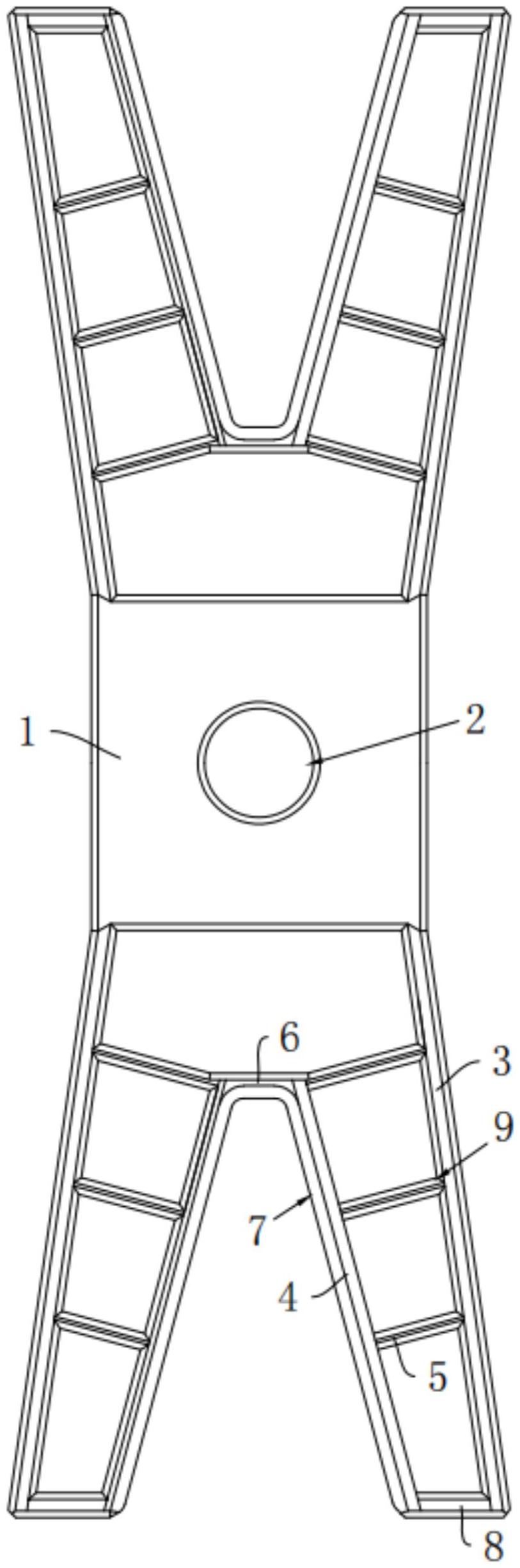 本申请涉及液晶面板减薄的领域,尤其是涉及一种顶喷式液晶面板减薄蚀刻机固定液晶玻璃用夹具,其包括固定块,固定块的周侧设置有多组限位组件,限位组件包括两个外支撑杆,两个外支撑杆相向的一侧均设置有内支撑杆,内支撑杆和外支撑杆之间固定连接有多个加强筋,两个内支撑杆靠近固定块的端部之间固定连接有第一连接杆,两个内支撑杆靠近固定块的一端呈锐角夹角设置;本申请中玻璃板与内支撑杆之间为点接触,减小了夹具与玻璃板之间的接触面积,利于在保证夹具支撑功能的前提下,实现避免玻璃板减薄面产生干扰纹的效果,利于确保玻璃板得到均匀的蚀刻薄化。
