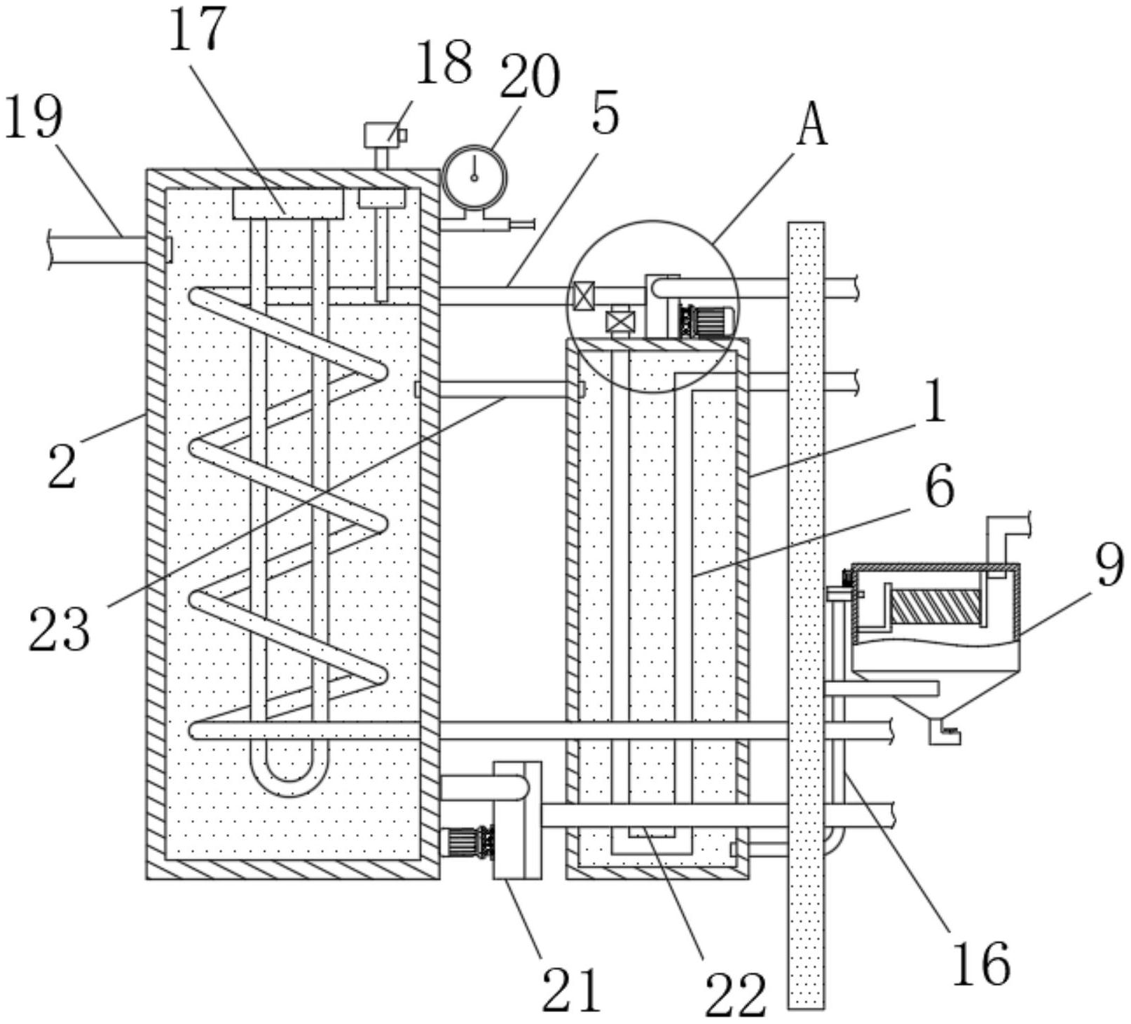本实用新型涉及油温机技术领域,且公开了一种具有自补油功能的油温机,包括冷却箱和储油箱,所述冷却箱和储油箱之间固定连接有连接管,所述冷却箱远离储油箱一侧设置有沉淀装置,所述冷却箱顶部固定连接有水泵,所述水泵输入端固定连接有进水管,所述水泵输出端固定连接有第一出水管,所述第一出水管上固定连接有第二出水管,所述第一出水管上固定设置有第一电磁阀。该具有自补油功能的油温机,在需要关机时,关闭第二电磁阀并打开第一电磁阀,通过第一出水管可对储油箱内部导热油进行降温,使其快速降低至标准温度以下,进而减少了关机时等待的时间,更加方便,通过设置沉淀箱,有利于将回收的导热油内的杂质进行沉淀处理。