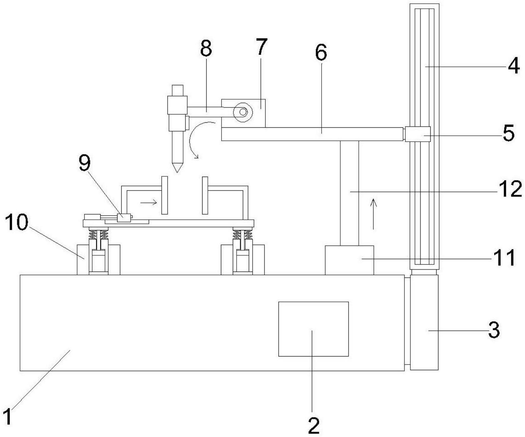 本实用新型公开了一种自行车车架冲击试验机,包括固定底座,所述固定底座上设置有减震结构,所述减震结构上固定设置有夹持机构,所述固定底座的侧面固定设置有横板,所述横板上固定设置有滑轨,所述滑轨与所述固定底座之间相互垂直,所述滑轨上设置有与其滑动连接的滑杆,所述滑杆上设置有与其固定连接的横杆,所述横杆上可拆卸式连接有摆动电机,所述摆动电机上设置有与其转动连接的撞击锤;本实用新型一种自行车车架冲击试验机,通用性强,操作方便,试验可靠,通过夹持机构能固定自行车车架,通过减震结构能够吸收检测中车架和夹持机构受到的巨大冲击力,避免夹持机构夹持不稳定,导致车架发生松动,抗震性强,能够吸收撞击后产生的余震。