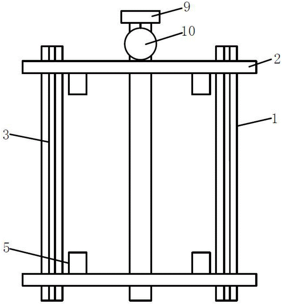 本实用新型公开了霰弹袋冲击试验机,包括主体框架,所述主体框架的两端均滑动设置有架杆,所述主体框架与每条架杆垂直设置,每条所述架杆相互对向的一端上均滑动设置有两个夹具,每条所述架杆和每个夹具均凹设有夹槽。通过本实用新型,厂商不用根据主体框架的尺寸额外制定一块用于测试的玻璃,对任一尺寸的玻璃进行固定夹持即可测试,有助企业节省更多的制造成本。