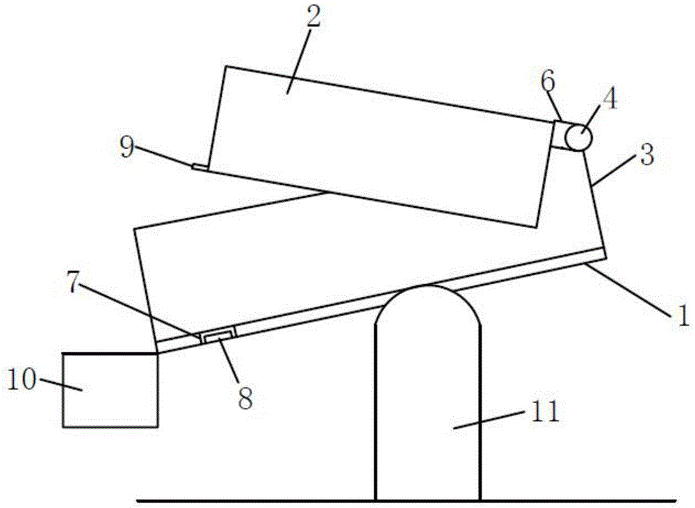 本实用新型公开了胶带粘性强度测试机,包括台阶面、移动板块以及竖立设置在台阶面一侧的支撑架,支撑架的一端上设置有测量杆,移动板块的一端与测量杆活动连接,台阶面的另一侧设置有固定板,固定板与移动板块平行方向设置。胶带的一侧边靠近于固定板并贴合在台阶面上,接着将移动板块通过套筒沿着测量杆上移动,将移动板块移动至胶带另一侧边的合适位置,将移动板块调节好位置好,接着将套筒绕着测量杆上向台阶面上进行转动时,直到移动板块靠近凹腔的一端置于凹腔内,以使固定板与移动板块之间形成一限定侧区。测试钢球从胶带上通过固定板与移动板块之间形成的限定侧区上完整滑动,而不会脱离到胶带的另一侧,从而达到良好的测试效果。